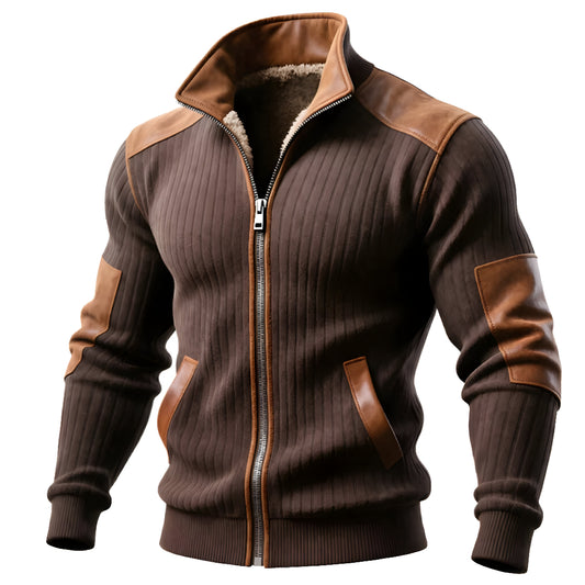 Nathaniel - Giacca marrone a coste con cerniera e dettagli in pelle