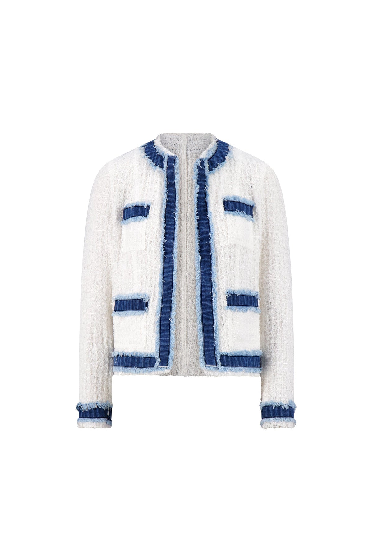 La Giacca Tweed Julia porta un'eleganza classica nella tua rotazione quotidiana. Realizzata in tweed classico con bordi sfrangiati e dettagli ispirati al denim, questo stile a girocollo offre texture e interesse visivo. Le maniche lunghe e quattro tasche frontali a pattina mantengono le cose pratiche, mentre i dettagli in tessuti misti la rendono tutto tranne che banale. Perfetta per essere indossata sopra tutto, dalle t-shirt ai vestiti. Abbinala al nostro denim iconico per un look di impatto.