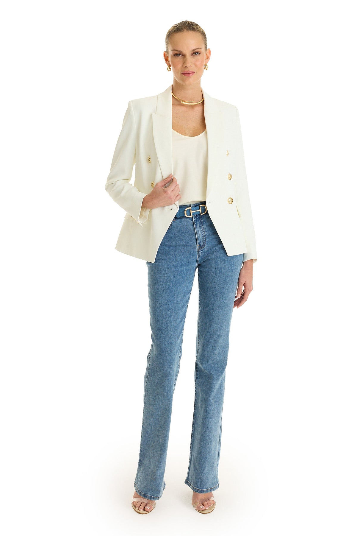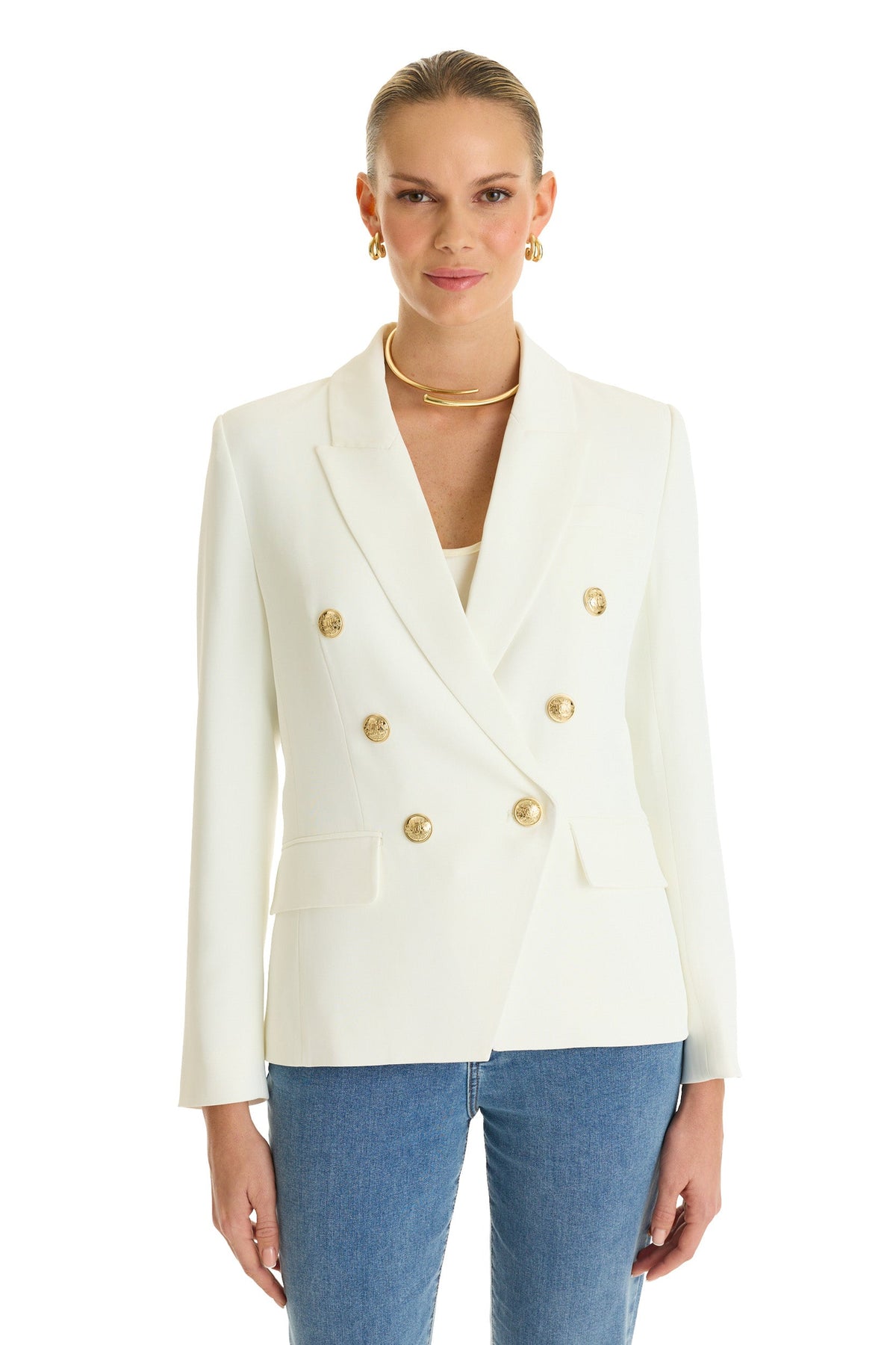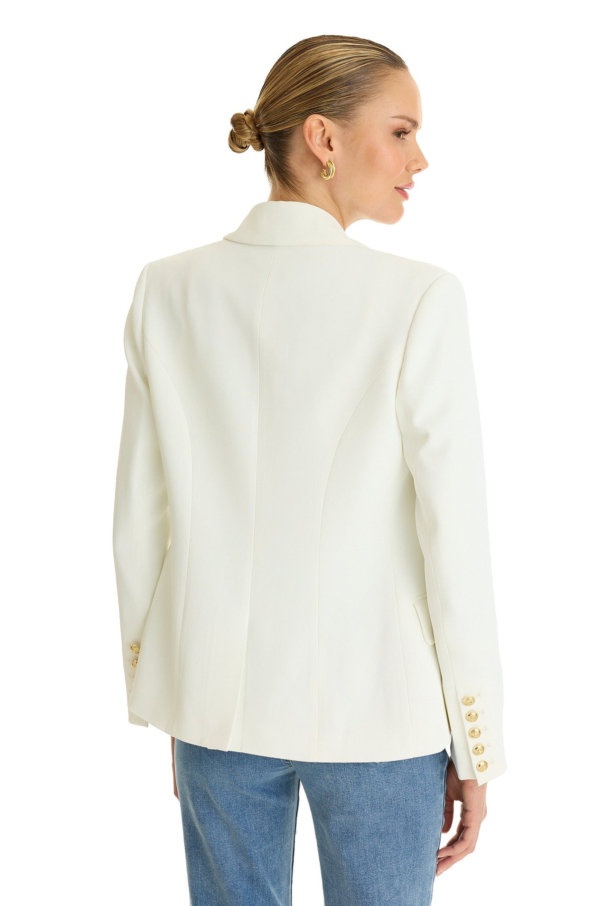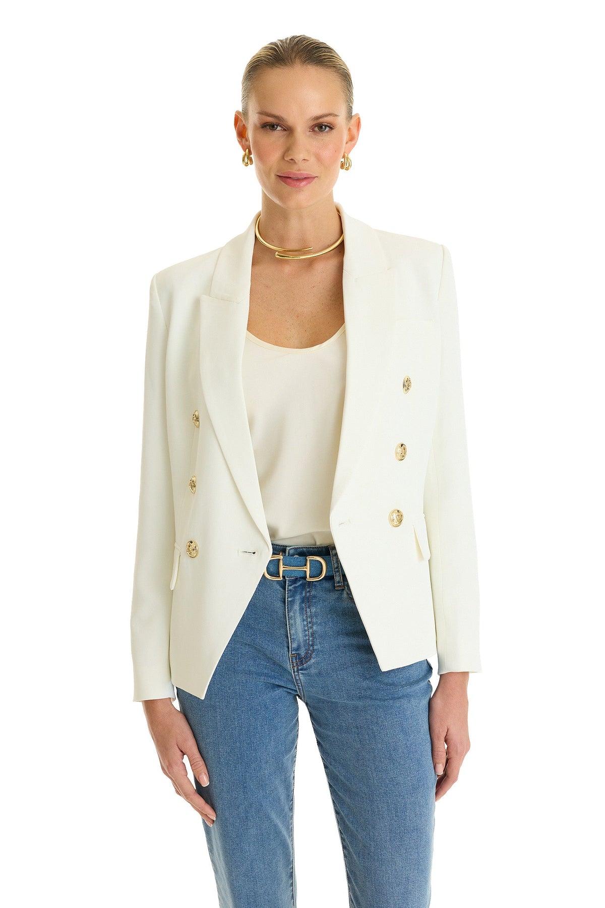 Il Blazer Doppiopetto Sasha è il tuo aggiornamento istantaneo dell'outfit. Progettato con un tessuto di alta qualità e una vita sagomata che si adatta perfettamente nei punti giusti, questo blazer è sinonimo di professionalità. Le spalle imbottite ti conferiscono una silhouette lusinghiera e una presenza autorevole, mentre i bottoni a cupola dorati in rilievo aggiungono un tocco di glamour. Completamente foderato con tasche a filetto e chiusura a bottone, è il capo perfetto per qualsiasi occasione. Indossalo aperto con jeans e una canotta o chiuso con i tuoi pantaloni preferiti.