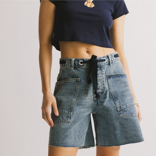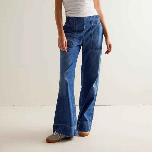 50% KortingEden – Jeans in denim a vita alta a gamba larga