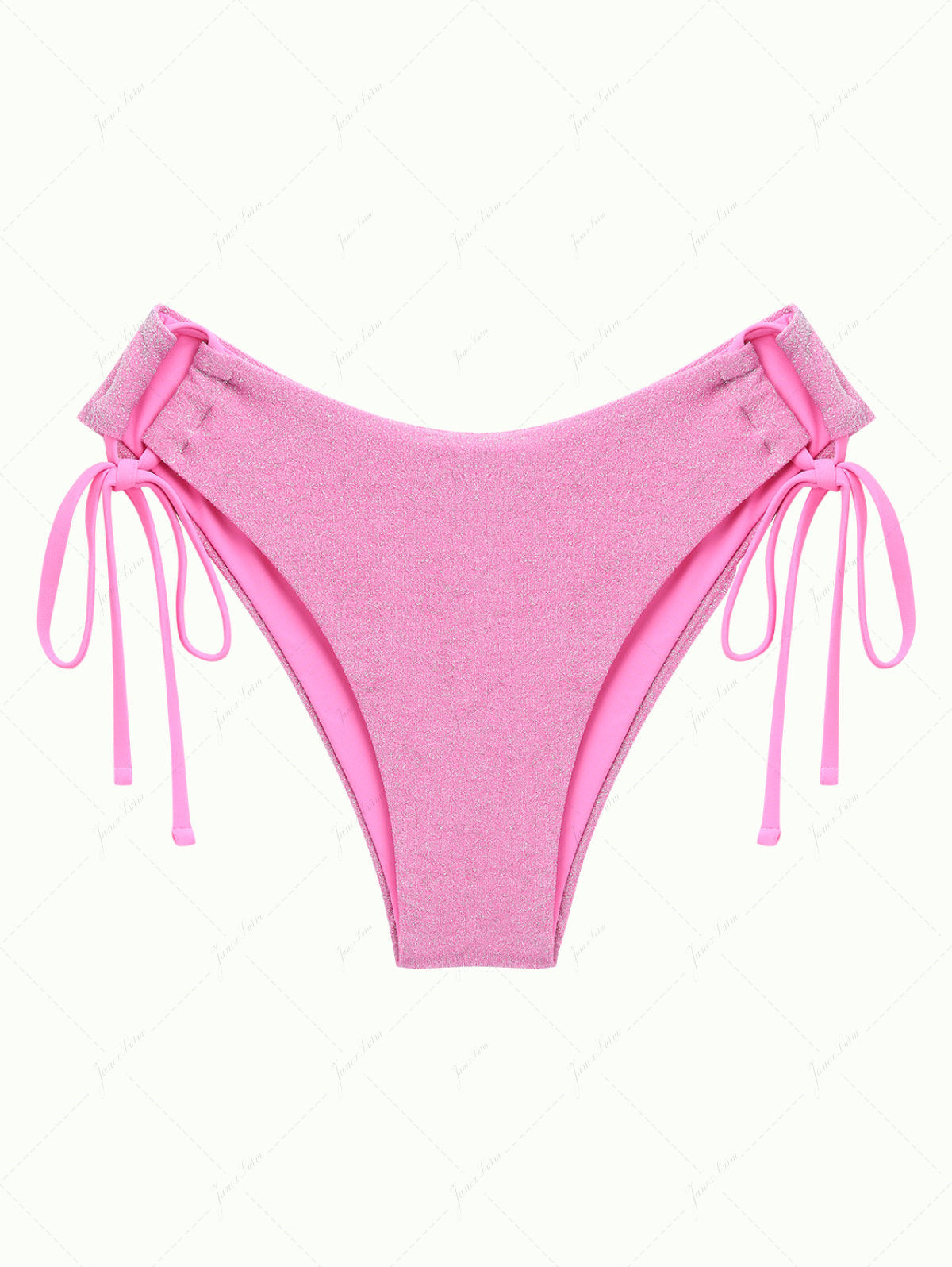Bikini Bottom a Copertura Totale con Lacci Lato Rosa Chiaro in Lurex