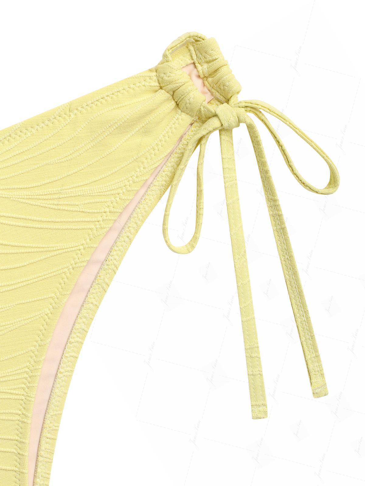 Bikini Bottom a Pieno Copertura con Tessuto Giallo e Lacci Laterali