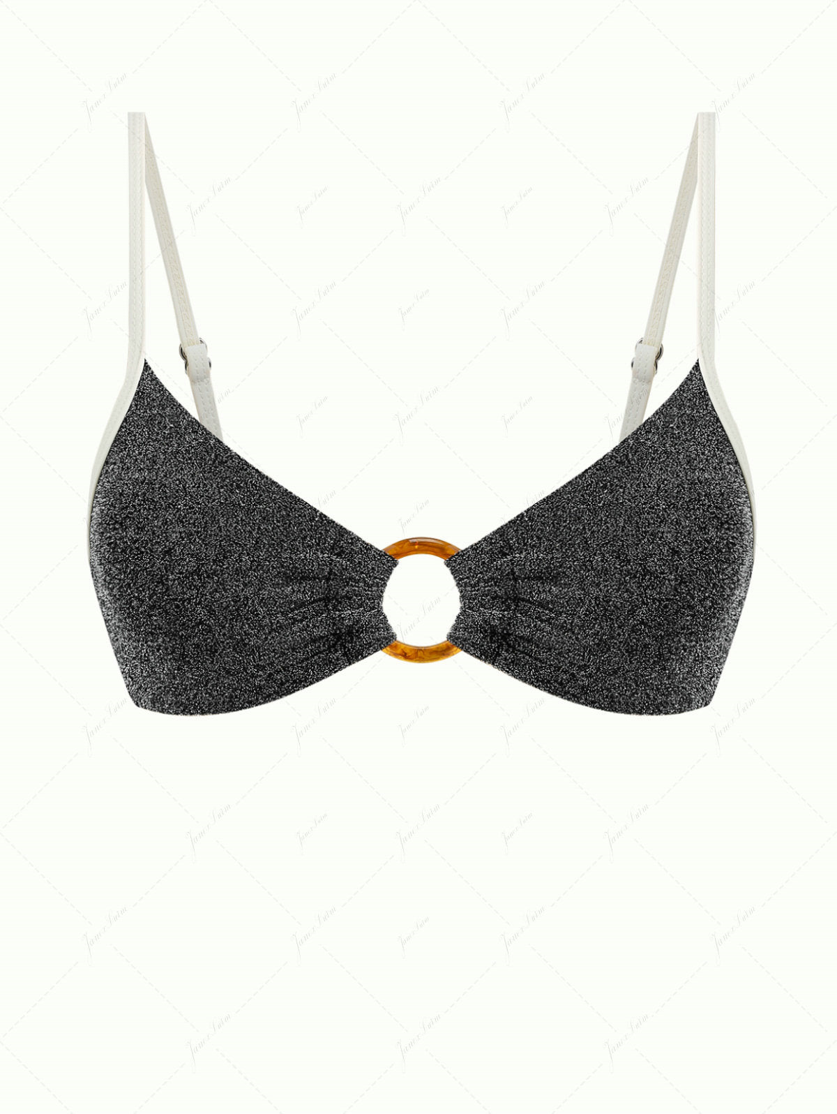 Top Bikini con Anello O in Lurex Nero Glitterato con Bordo a Contrasto