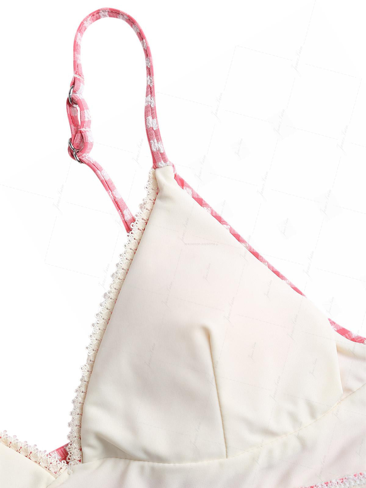 Top Bikini Stile Tank con Fiocco in Pizzo a Rete Rossa