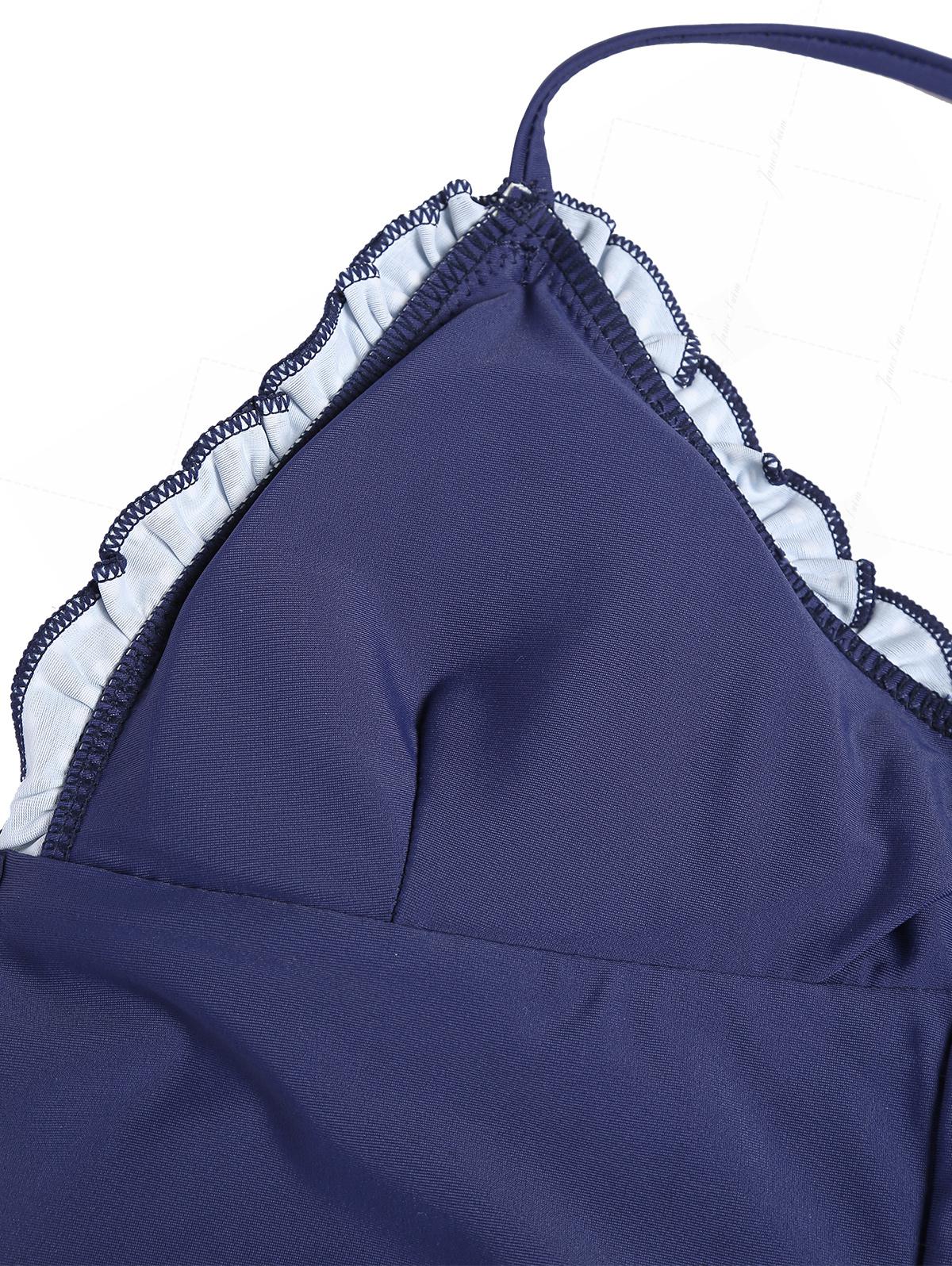 Top Bikini Tankini con Fiocco a Pois Blu Profondo Vintage