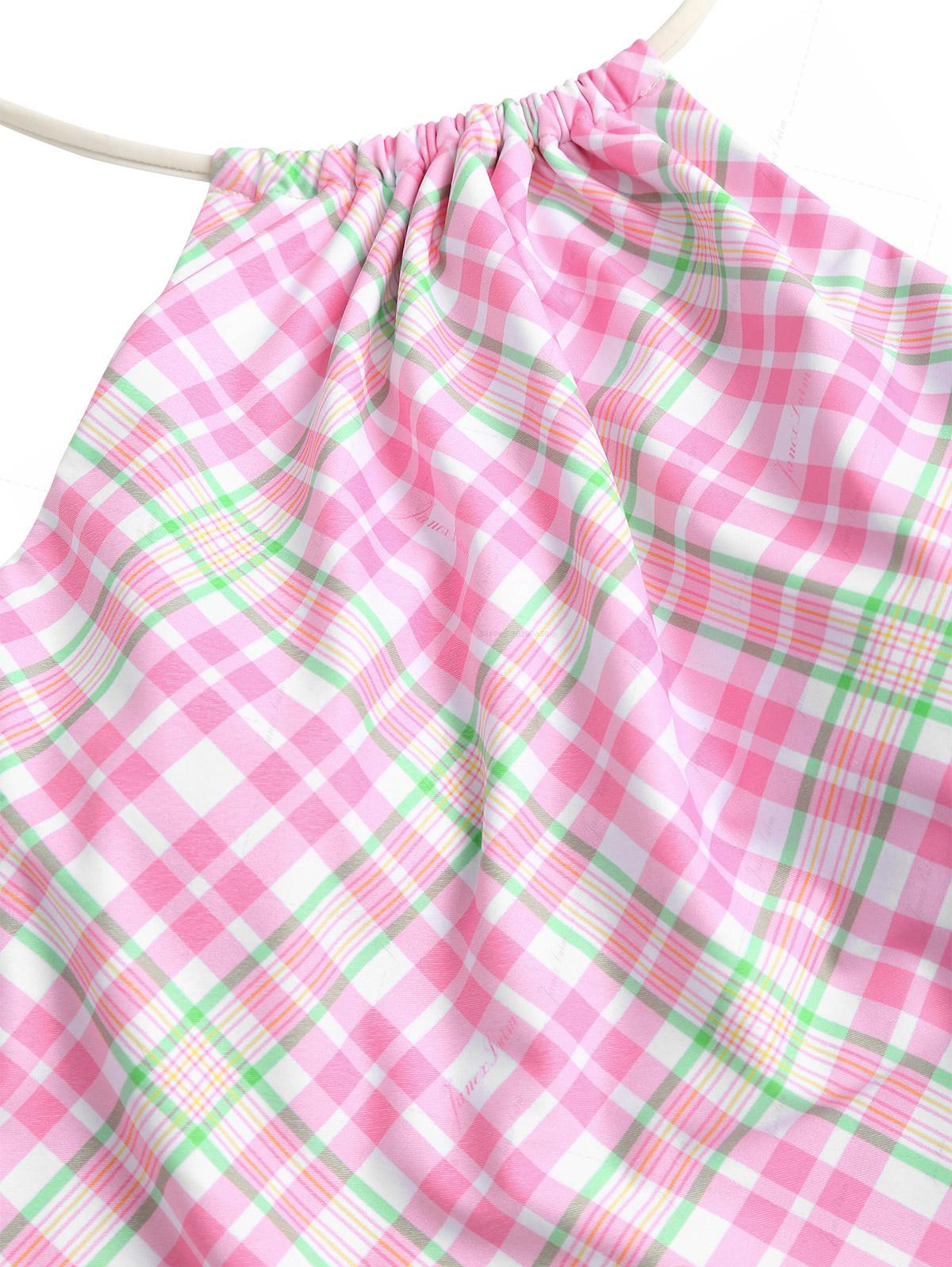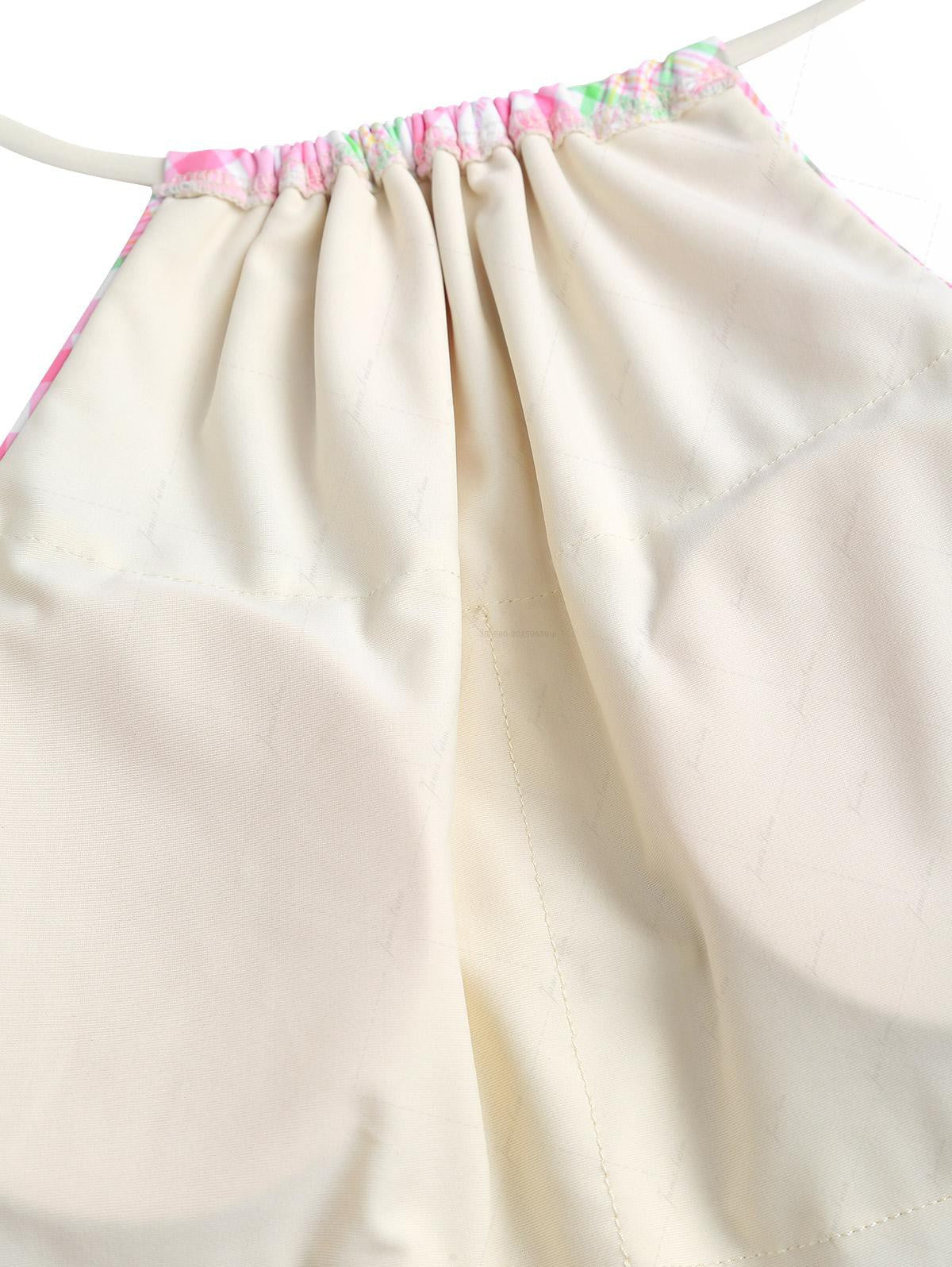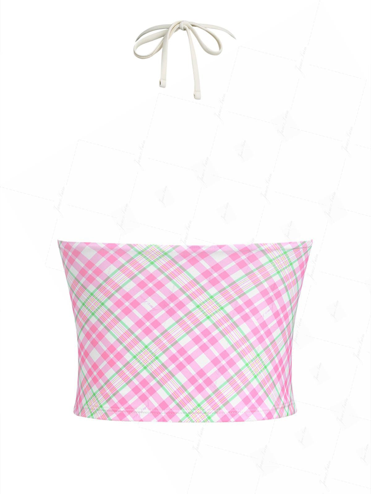 Top Bikini Tankini con Scollo Halter a Quadretti Rosa Chiaro