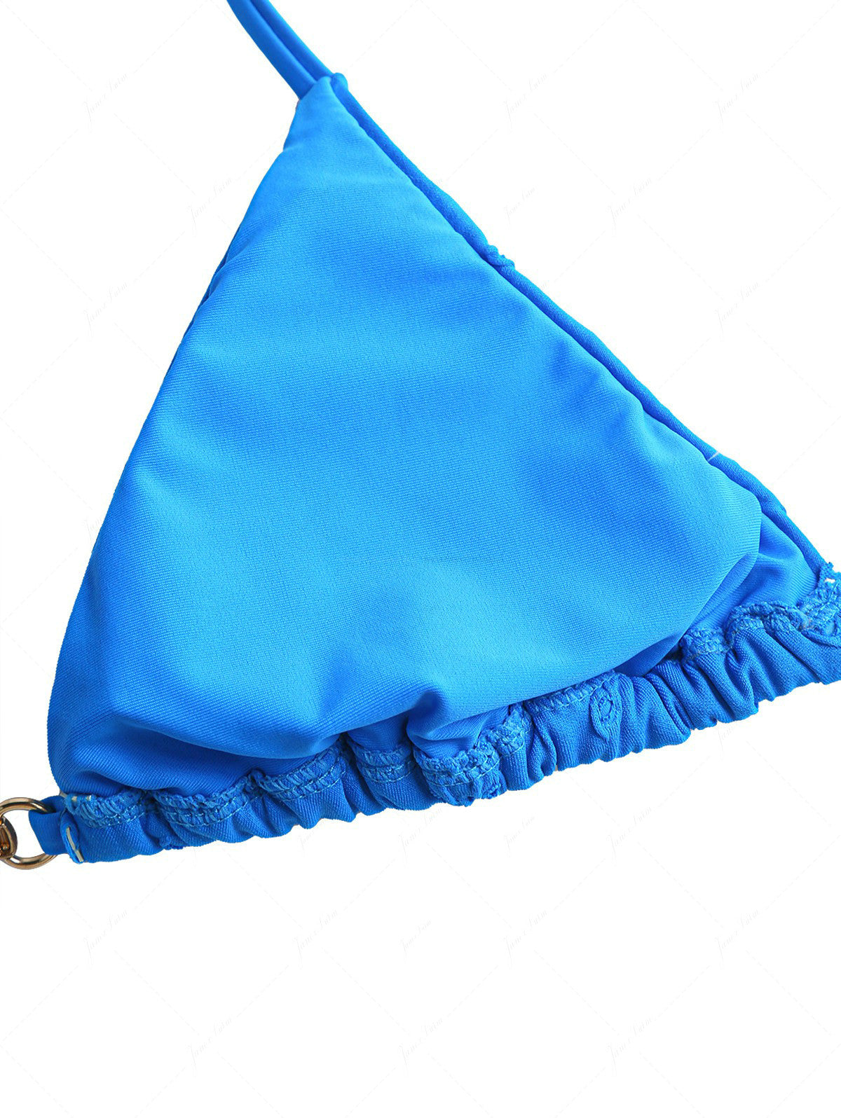 Top bikini triangolo in jacquard di tessuto riciclato blu con perle finte