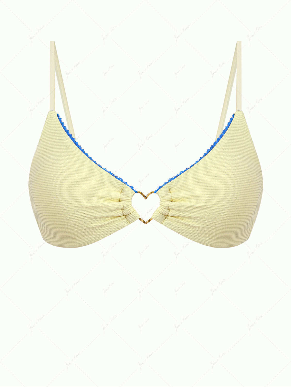 Top da bikini a forma di cuore con paillettes glitterate gialle