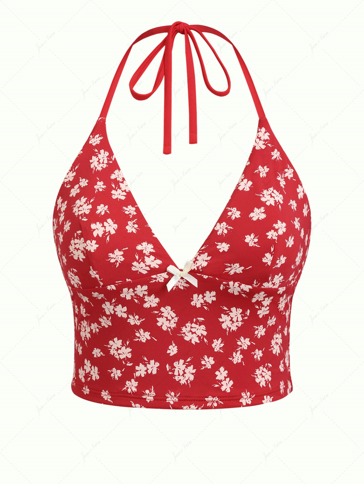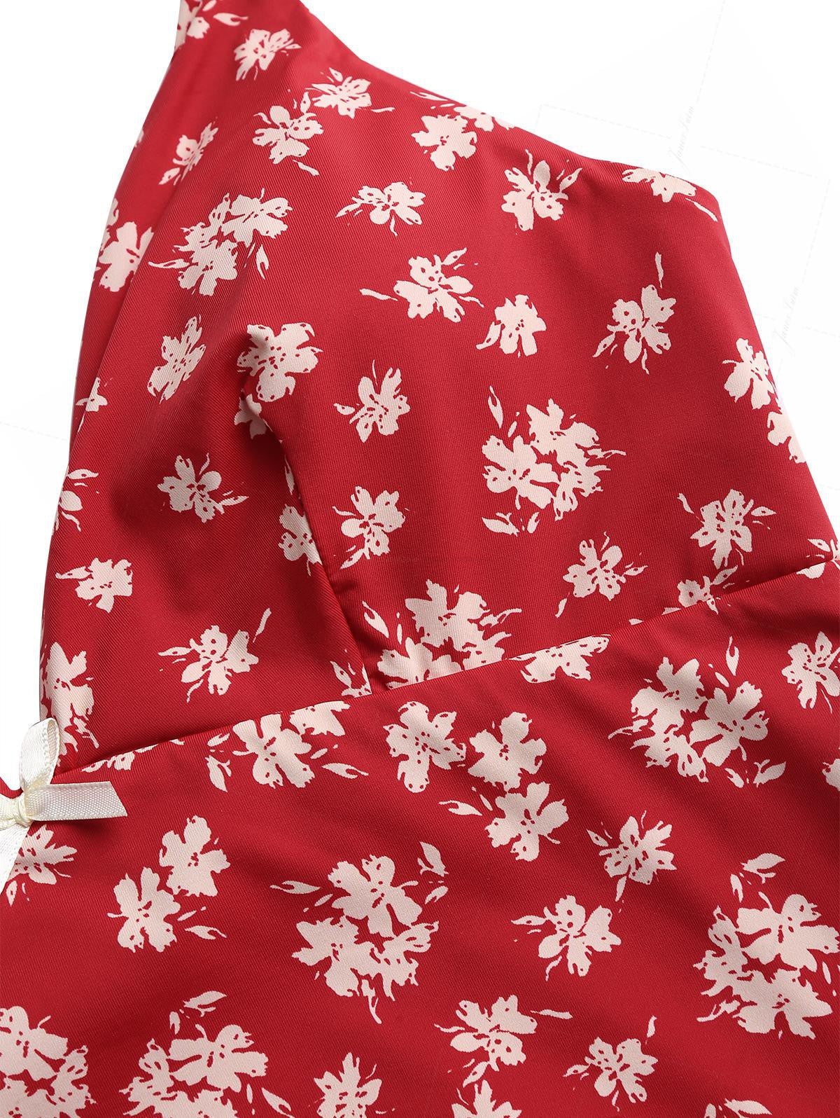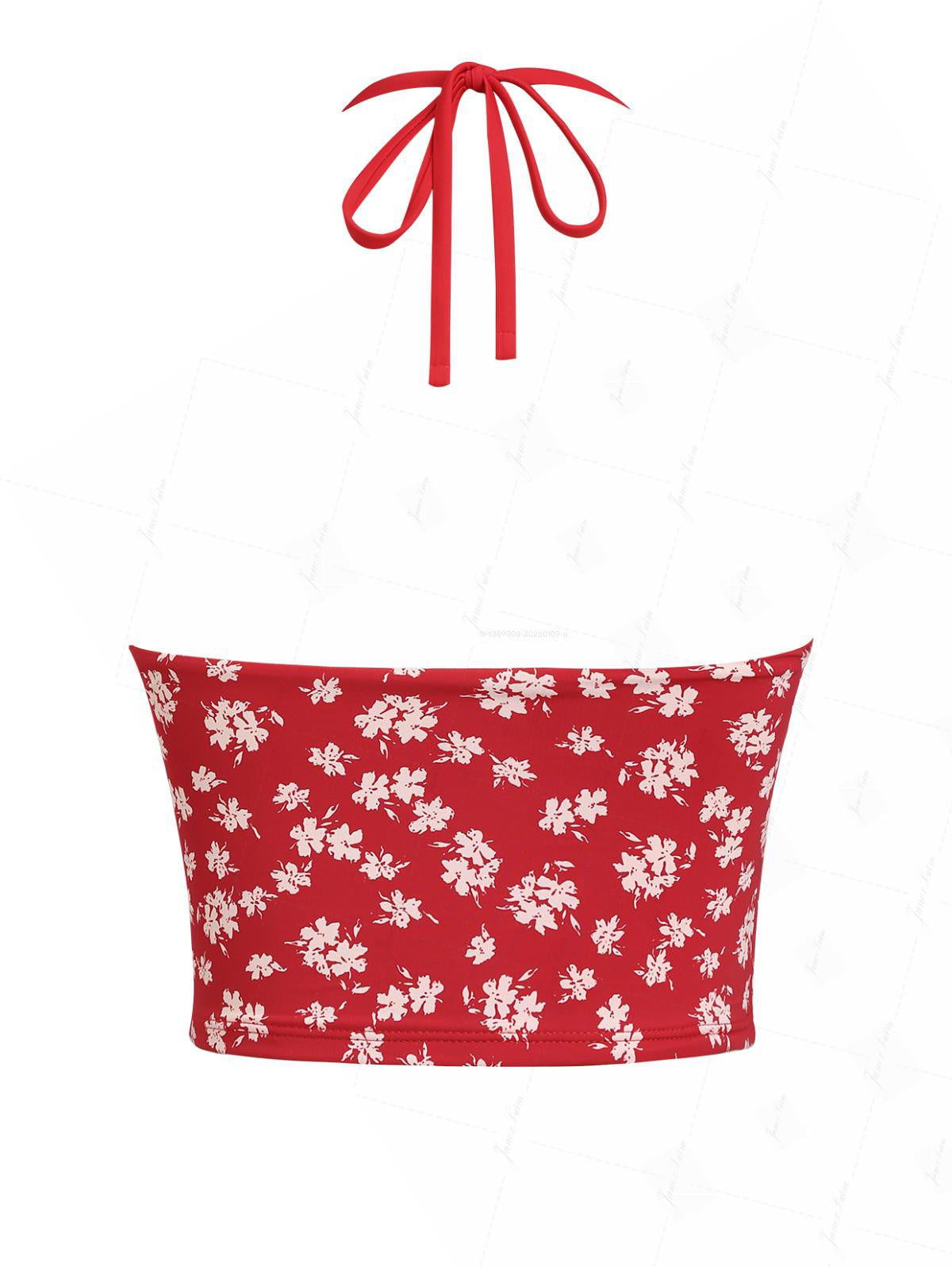 Top Tankini con Fiocco Floreale Rosso