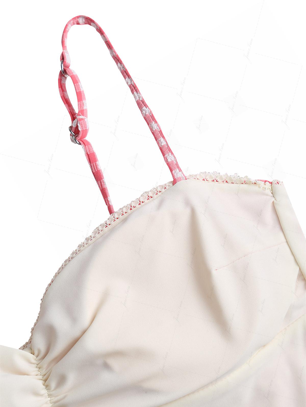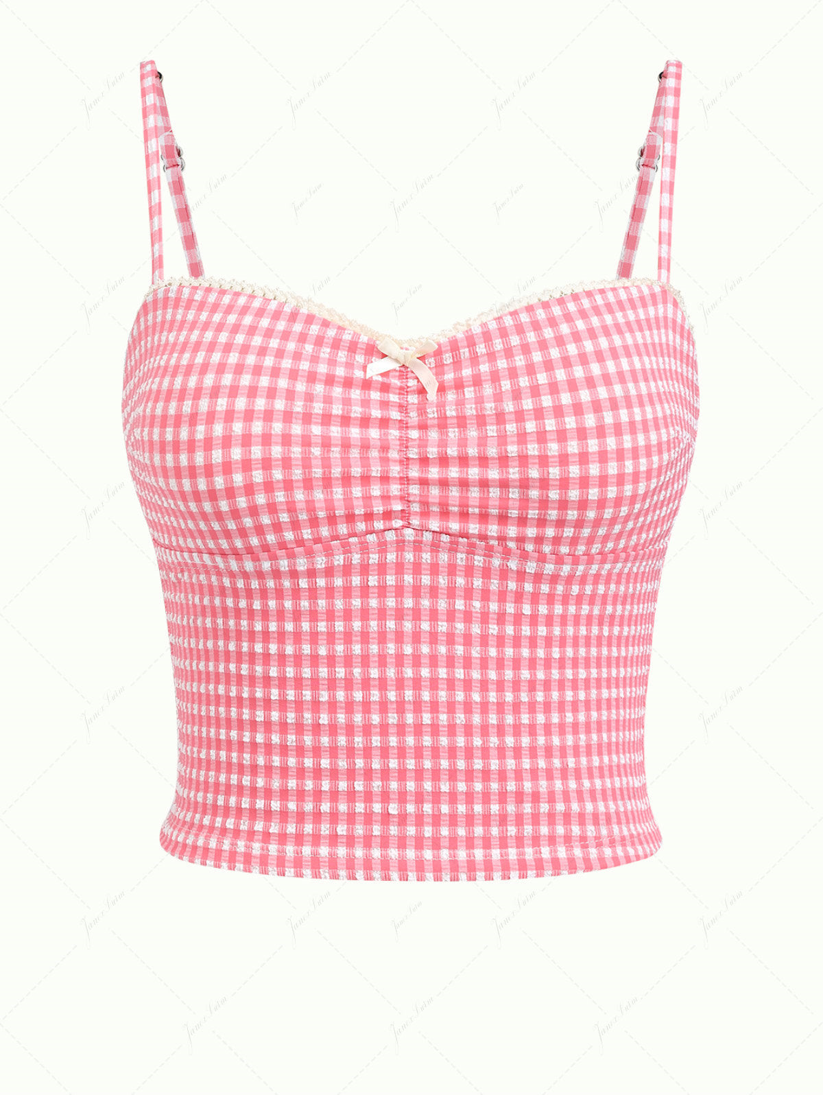 Top Tankini con Fiocco in Pizzo a Rete Rossa