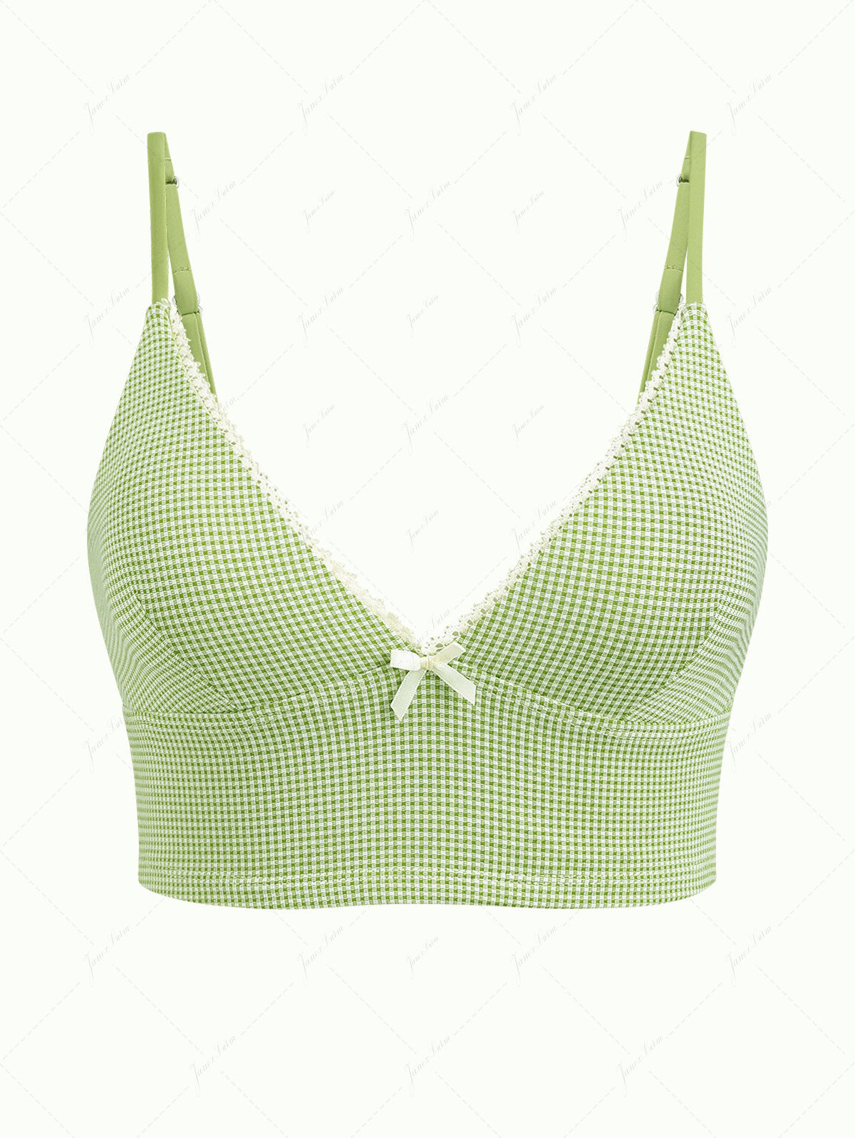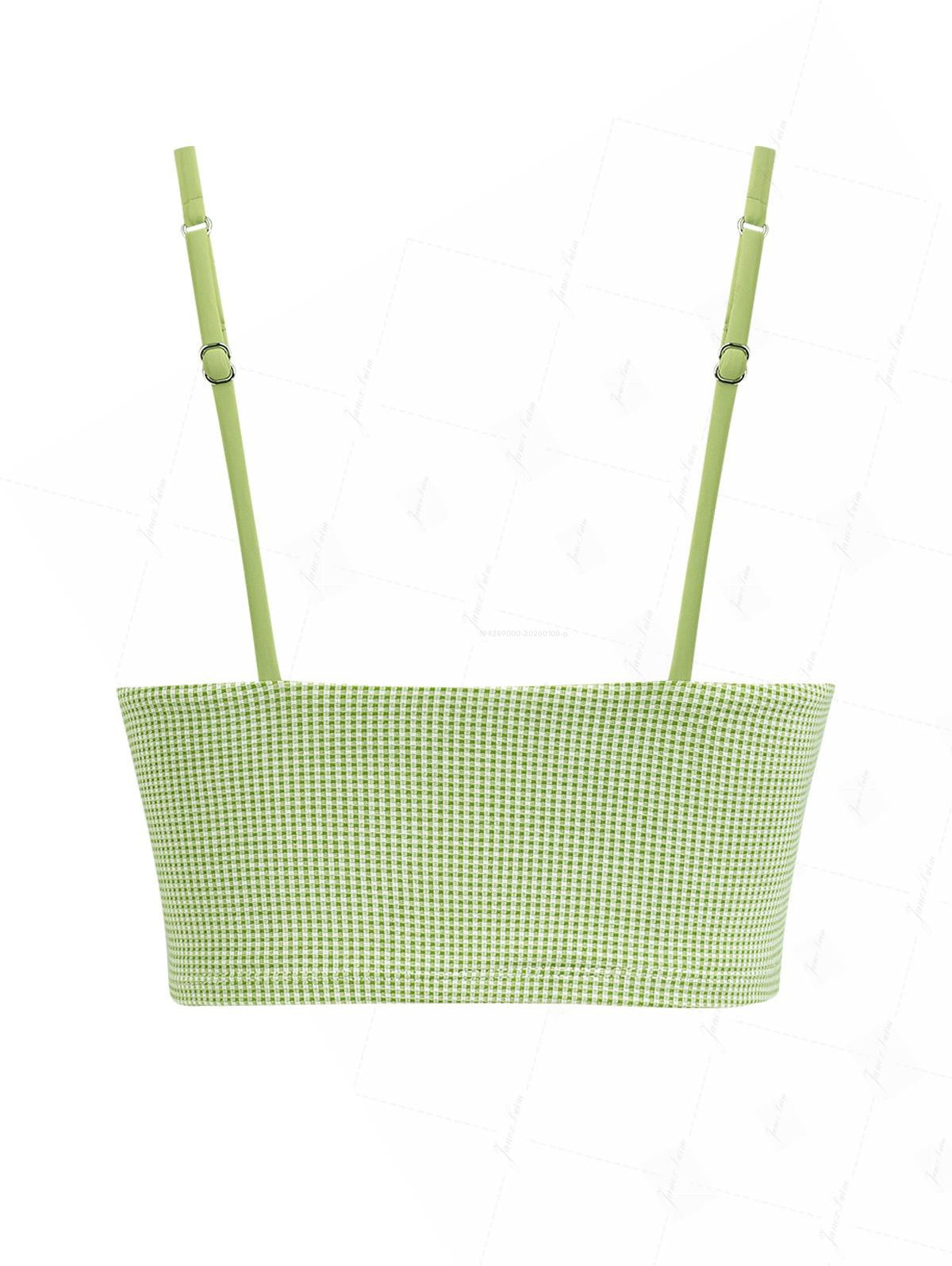 Top Tankini con Fiocco in Pizzo a V Verde a Quadri