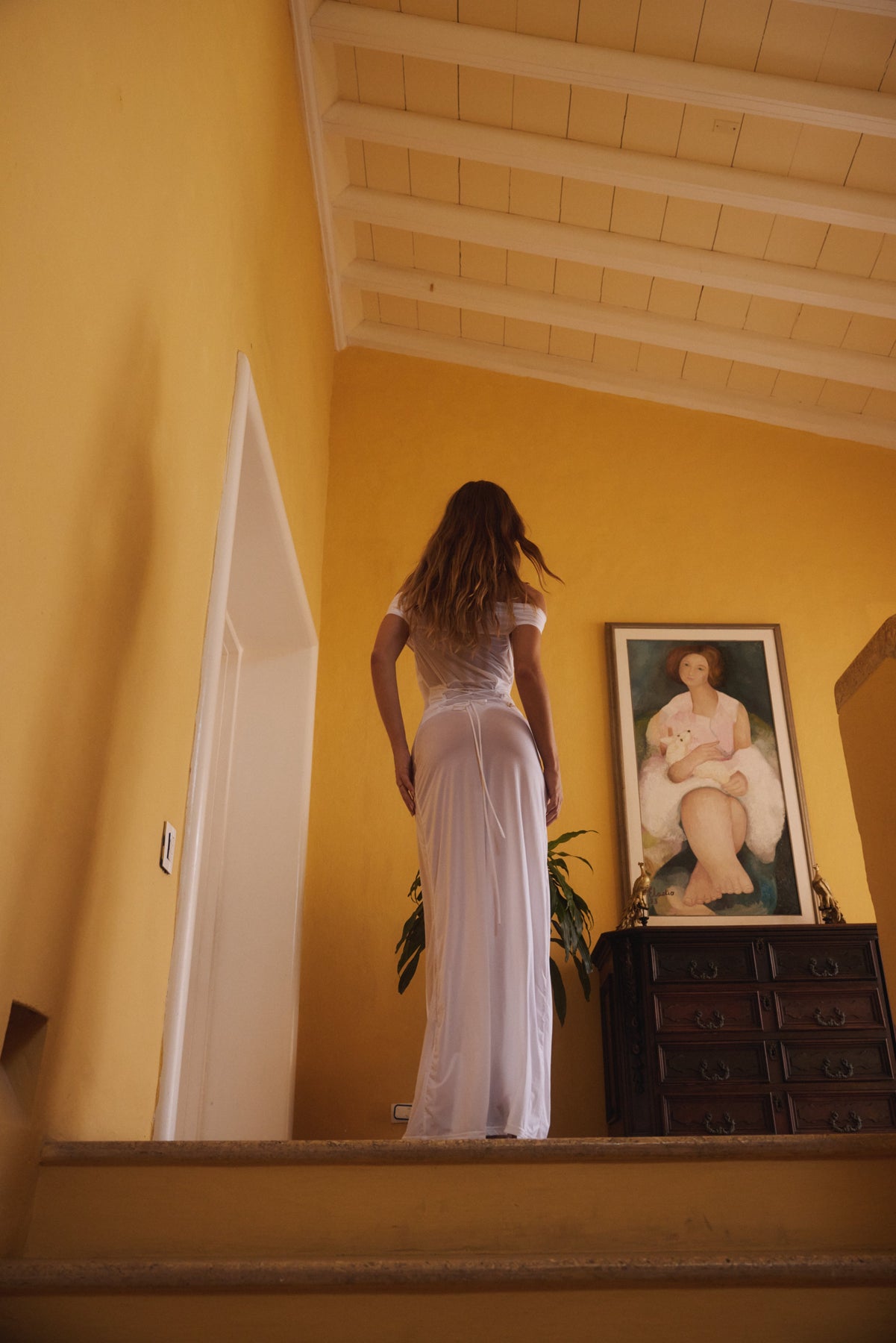 Il Jolie è progettato per la versatilità. Presenta un doppio strato che si sovrappone nella zona del seno, creando un look off-shoulder, esponendo il décolletage. Questo è un abito lungo. Il materiale ha una minima elasticità, e ti consigliamo di indossare la tua taglia abituale. Presenta una chiusura a corsetto sul retro per accentuare la vita. Di un bianco brillante. Indossalo trasparente con un bikini in un beach club in Europa, oppure aggiungi il sottogonna per creare l'abito perfetto per le damigelle. Non vuoi un look trasparente? Acquista il sottogonna nudo senza spalline, per una versione più modesta.
