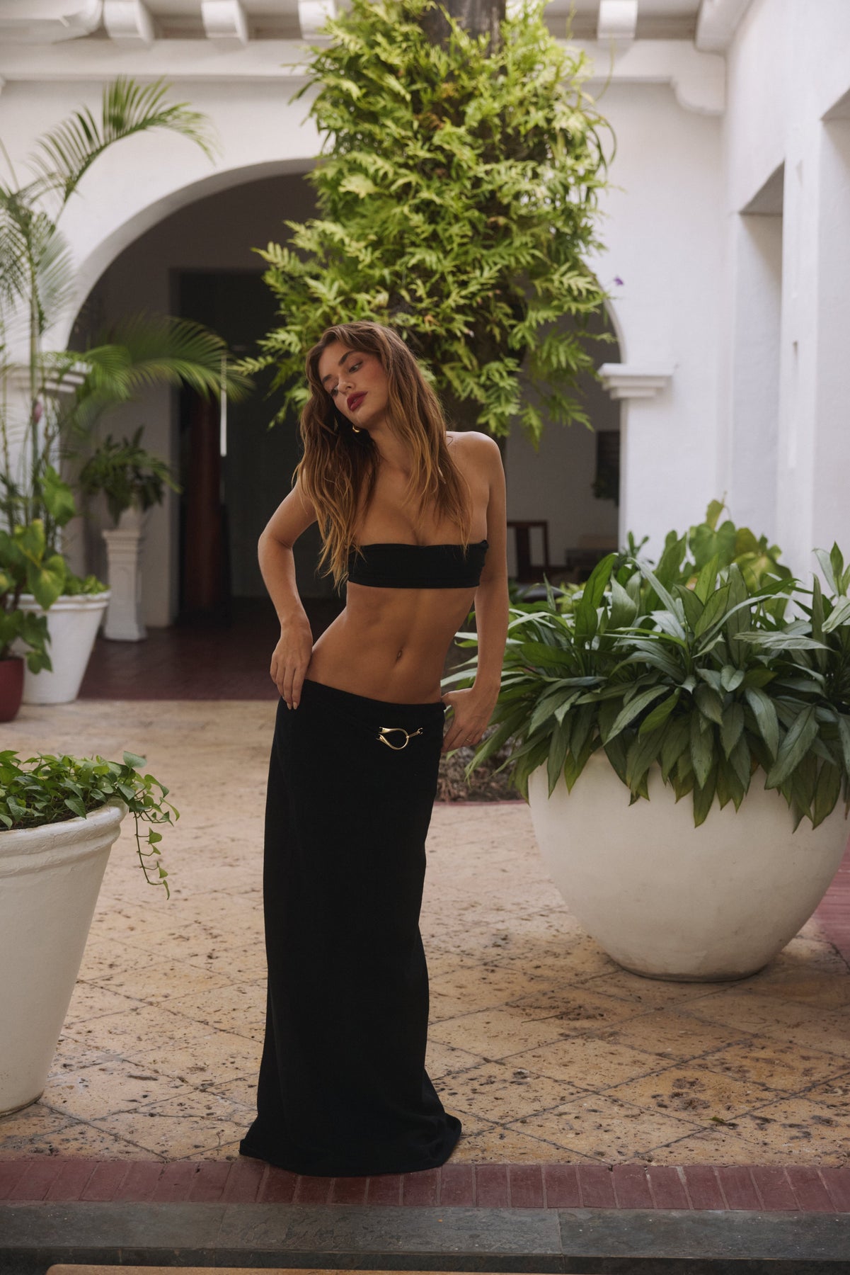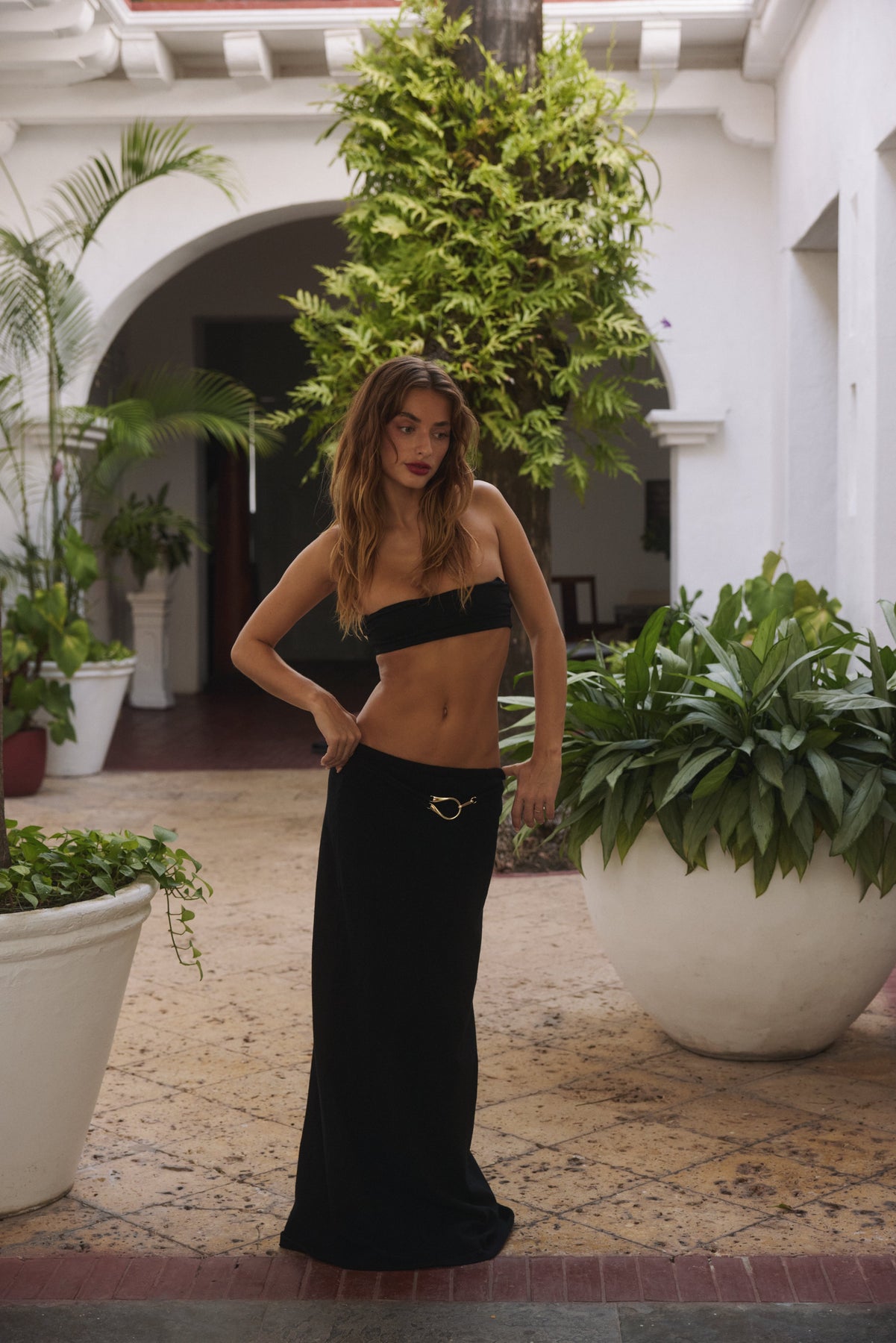 La Gonna Maxi Ford Horseshoe è stata ispirata dalle mode del passato e dal nostro best seller Vestito Mini Horseshoe. La iconica fibbia a ferro di cavallo è abbinata a una cintura a loop drappeggiata bassa su una maxi in maglia elegante che scolpisce e mette in risalto le tue curve naturali. Questa maxi è perfetta per le giornate e le notti estive. Abbinala al tuo bikini preferito o per una cena serale con un carino crop. La scelta è tua.