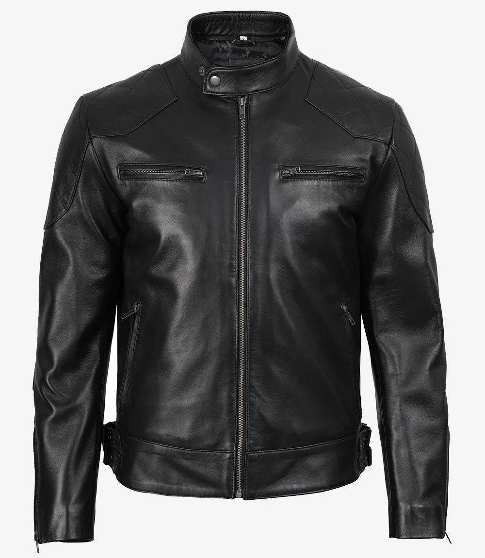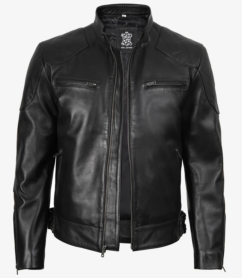 Giacca da motociclista nera in vera pelle per uomo