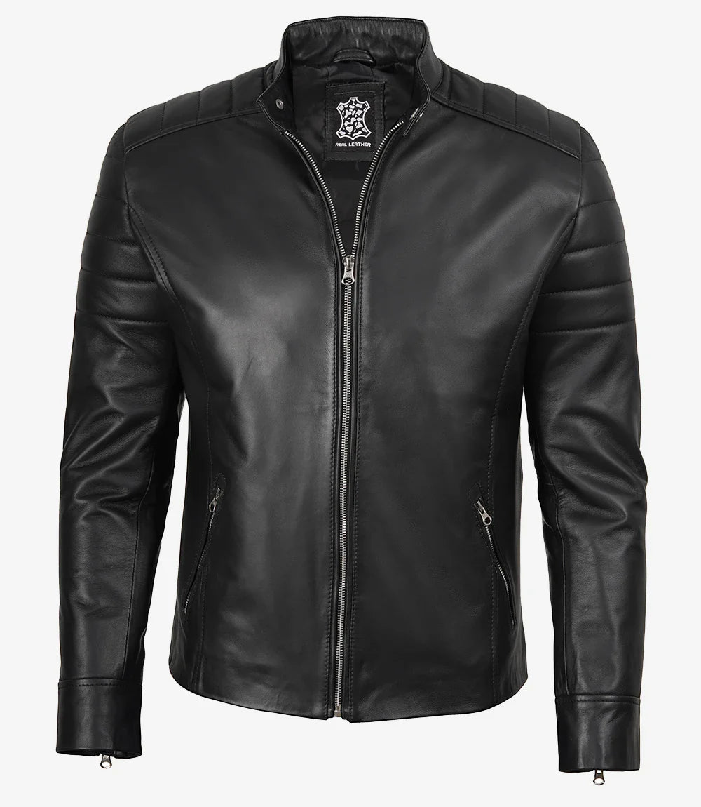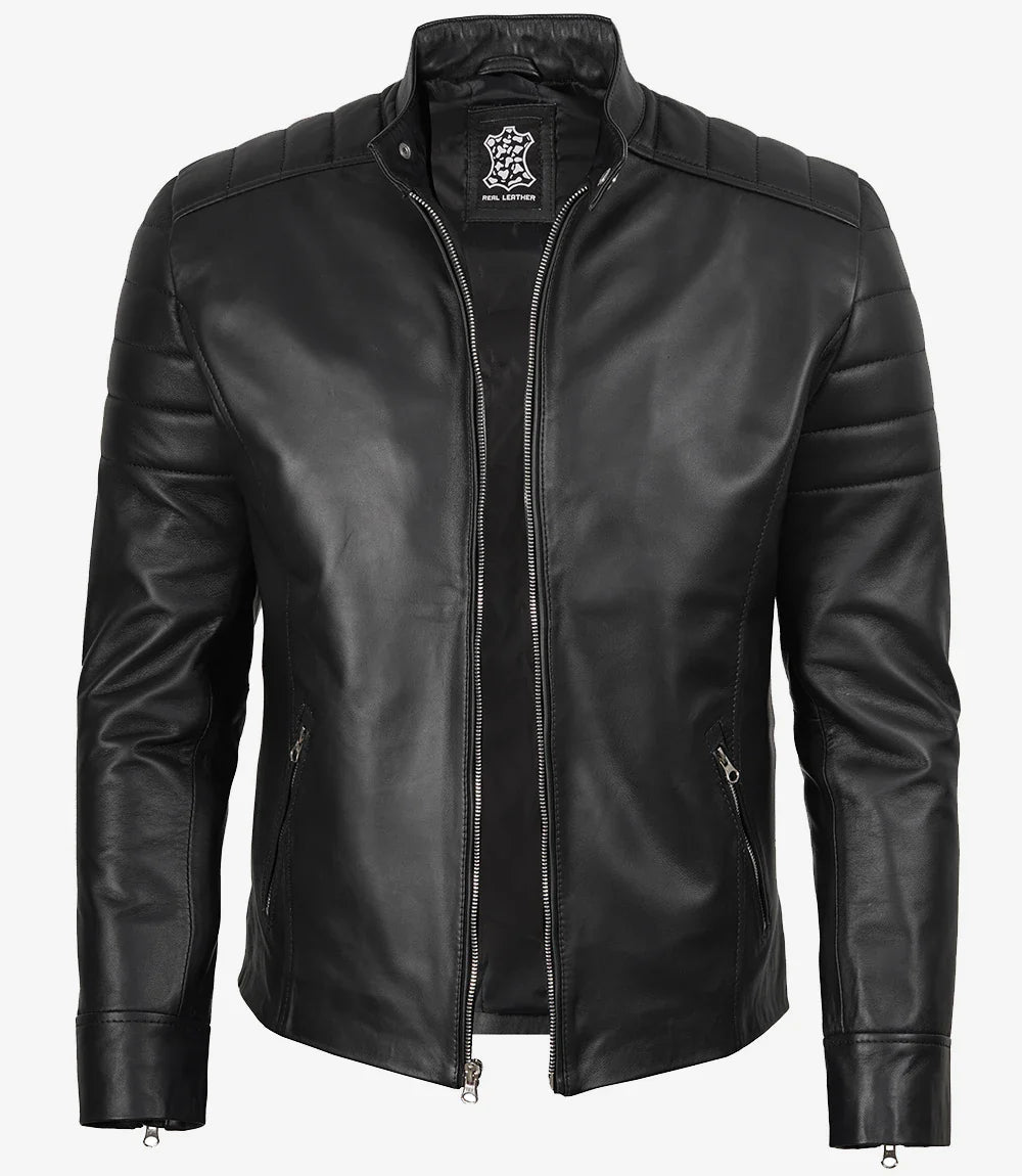 Questa giacca in pelle nera stile motociclista per uomo è realizzata in pelle di agnello di alta qualità, progettata per unire stile e longevità. La sua texture ricca trasmette sofisticatezza, mentre la fodera in poliestere morbido garantisce comfort. Dotata di una chiusura con zip e molteplici tasche, unisce moda e praticità.