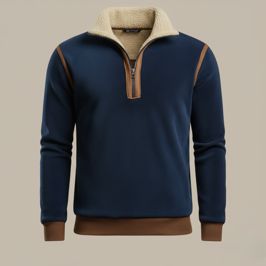 Khaleel - Felpa polo invernale da uomo con colletto in pelle