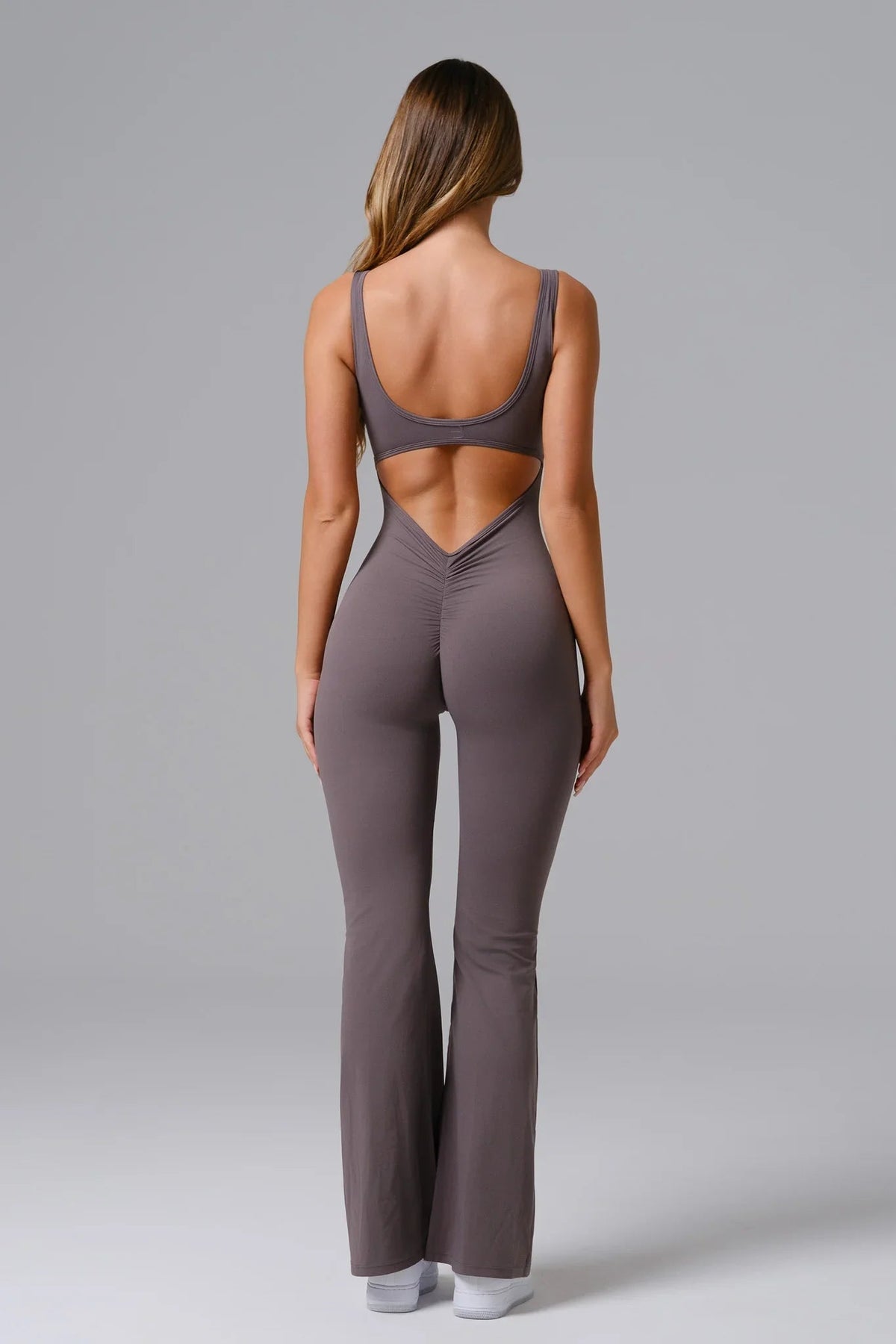 Una tuta elegante a lunghezza intera con gambe svasate, scollatura a barca e un'apertura sulla schiena per un tocco moderno. Realizzata in tessuto morbido e elasticizzato con reggiseno integrato e imbottitura removibile, la tuta Ariana offre comfort e supporto senza sforzo mantenendo un aspetto chic e raffinato dal giorno alla notte.