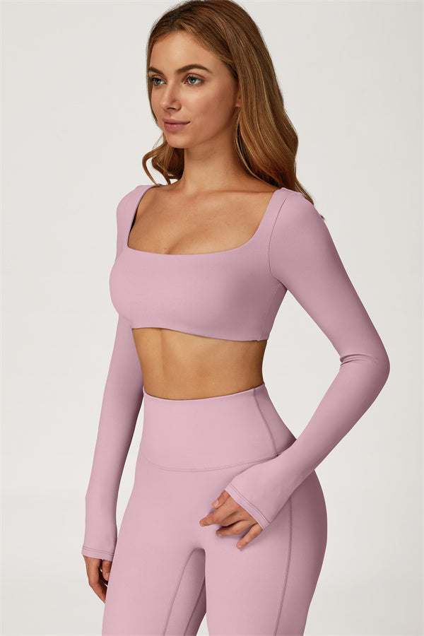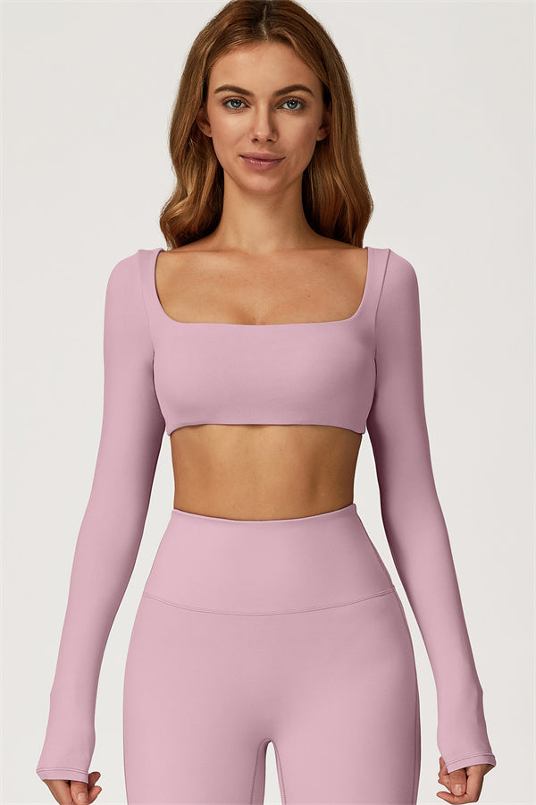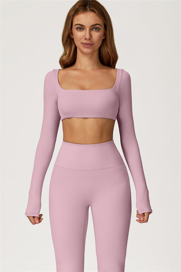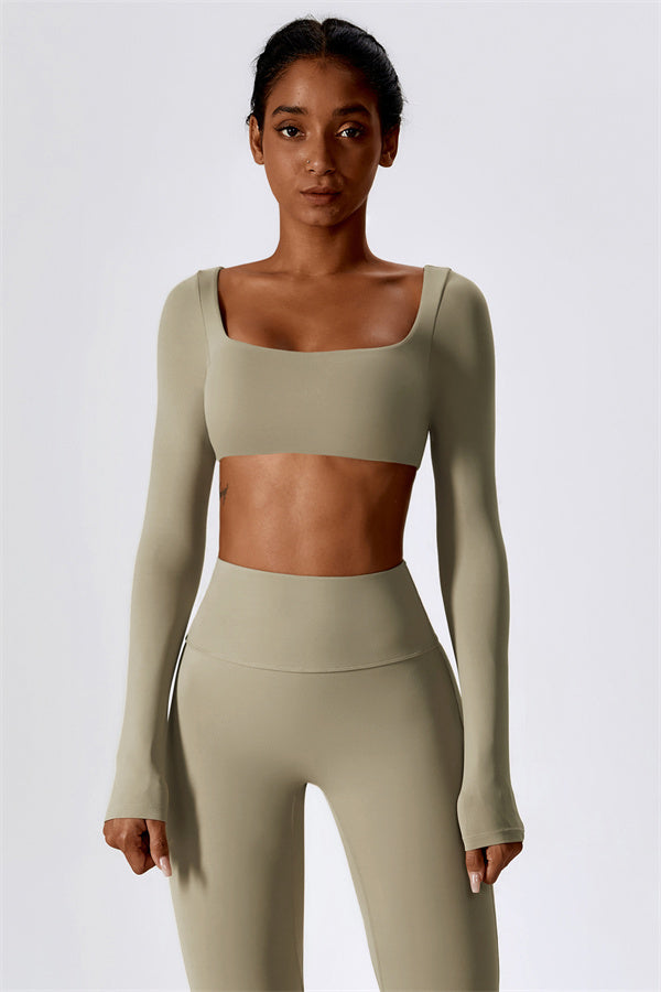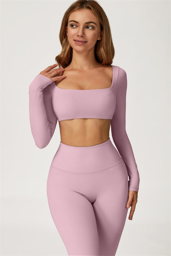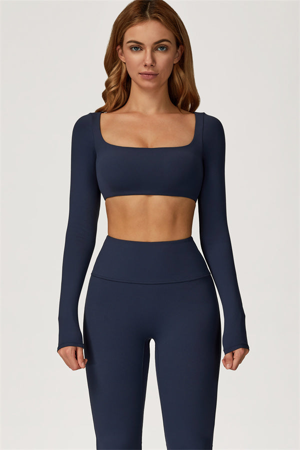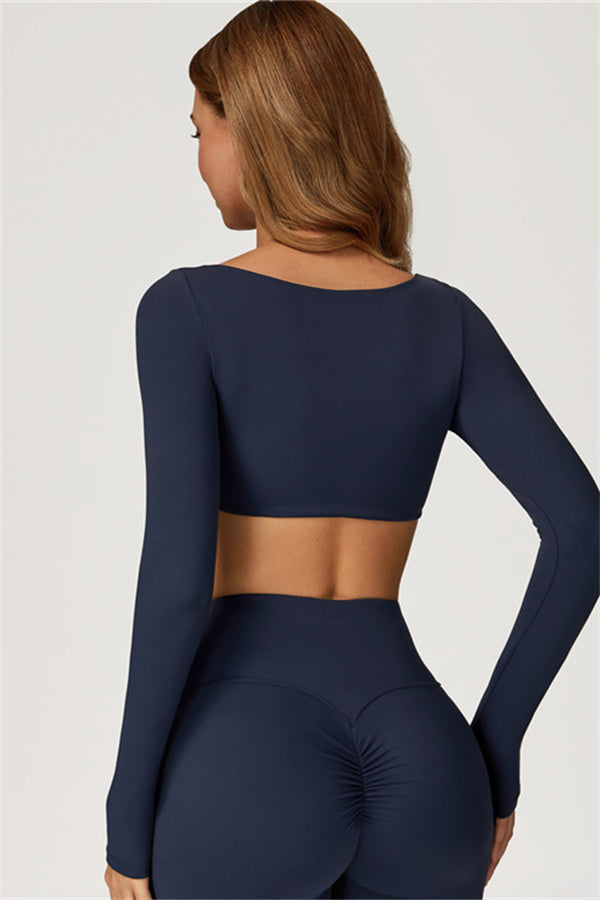 Questo elegante set coordinato, composto da un top a maniche lunghe e leggings, è progettato per migliorare sia il comfort che le prestazioni. Il top presenta un ampio scollo che si adatta perfettamente alle spalle, mentre il taglio a lunghezza media mette in risalto delicatamente la tua vita. Il design scolpito dei leggings con vita arricciata accentua le tue curve e solleva il tuo fondoschiena per una forma meravigliosamente contornata.