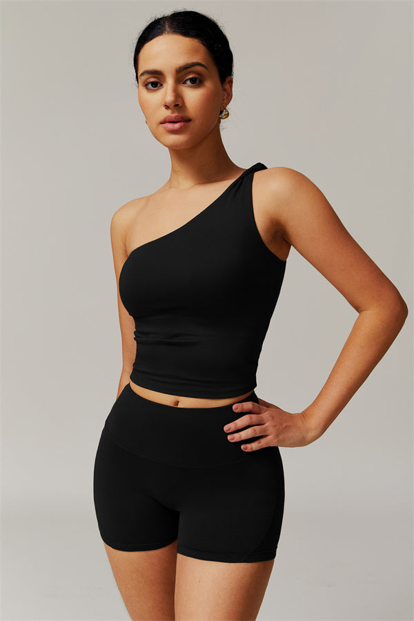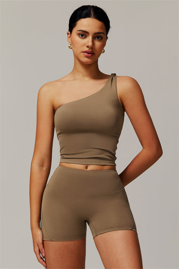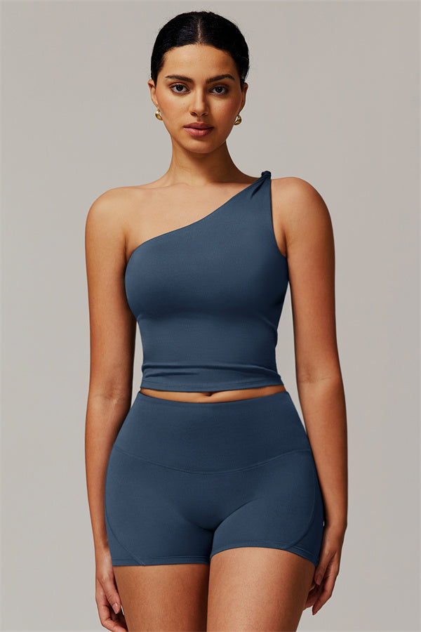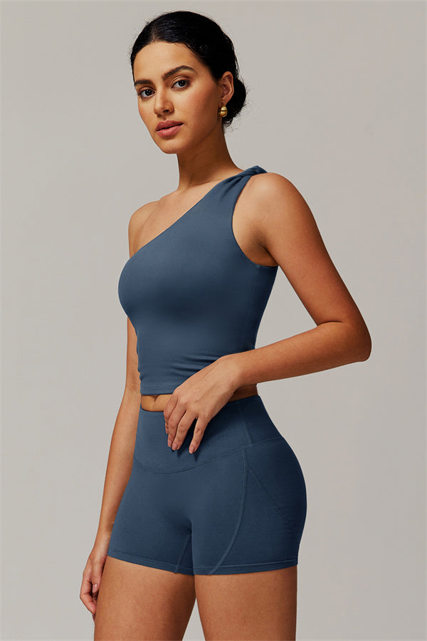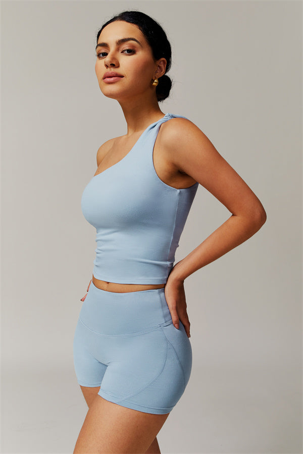 Progettato sia per lo stile che per la funzionalità, questo top corto asimmetrico offre un dettaglio unico con nodo a spirale sulla spalla per un look elevato e alla moda.