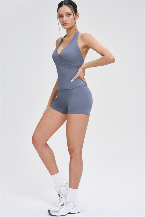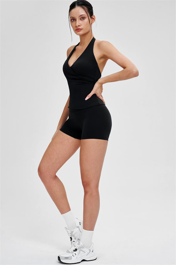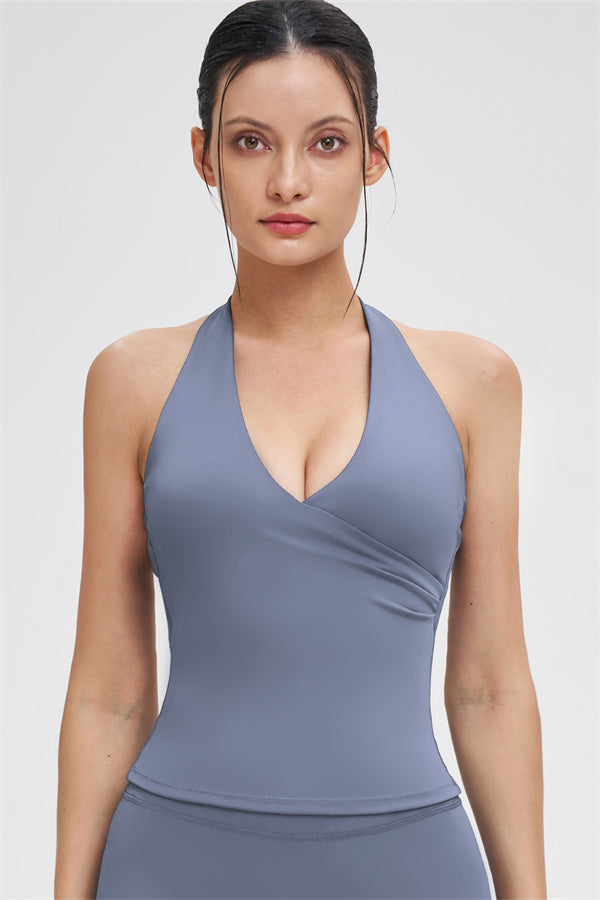 • Design incrociato a V con allacciatura che esalta le linee delle spalle e del collo