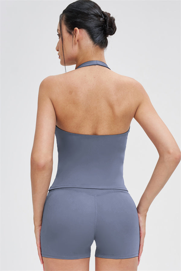 Il Nuovo Set di Due Pezzi Stride Crop Top & Shorts è progettato per stile, comfort e libertà di movimento, perfetto per allenamenti o abbigliamento casual.