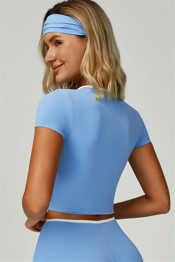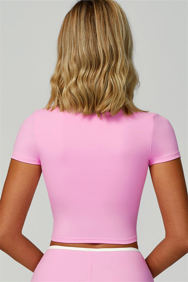• Silhouette a maniche corte aderente per un look elegante e atletico