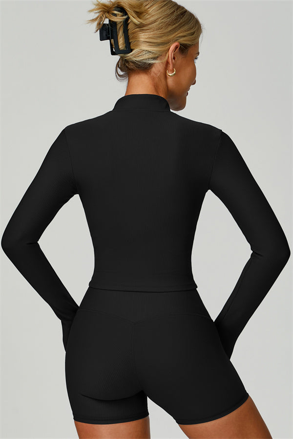 Potenzia i tuoi allenamenti e le avventure all'aperto con il Set Burst, un trio versatile progettato per stile, supporto e comfort. Questo set coordinato include una giacca slim-fit, un reggiseno sportivo con scollatura quadrata che esalta la figura e pantaloni corti a vita alta realizzati in morbido tessuto riciclato a coste traspirante.