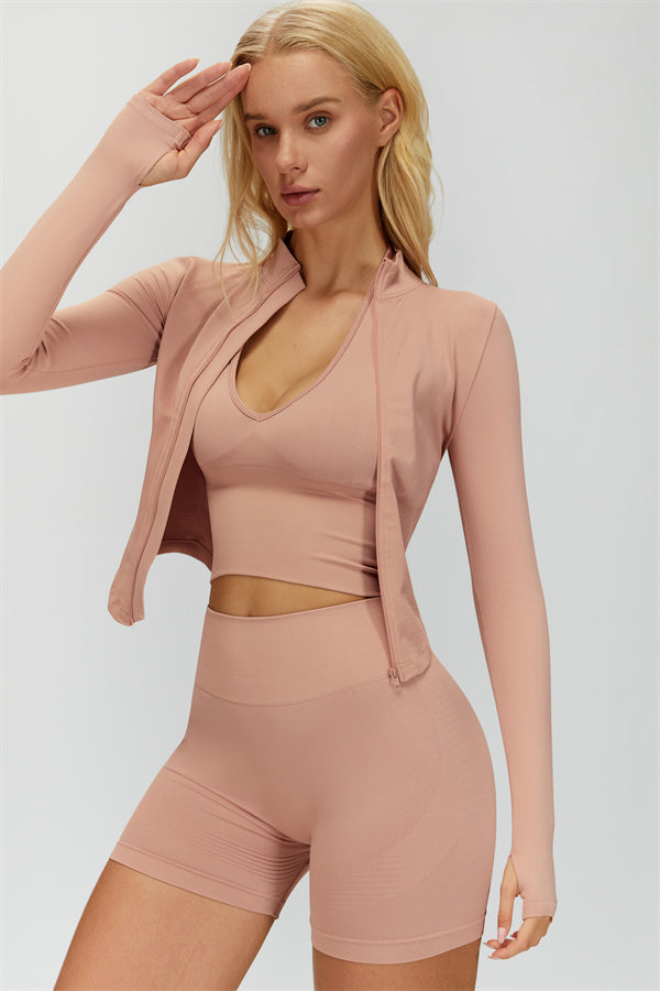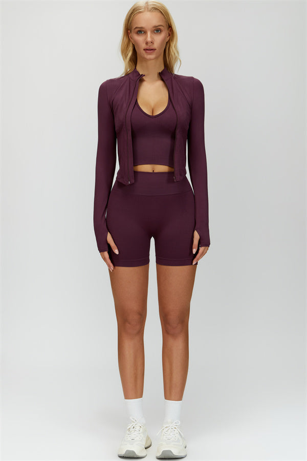 Il Set di Giacca, Reggiseno Sportivo e Pantaloni Corti Delight in 3 Pezzi