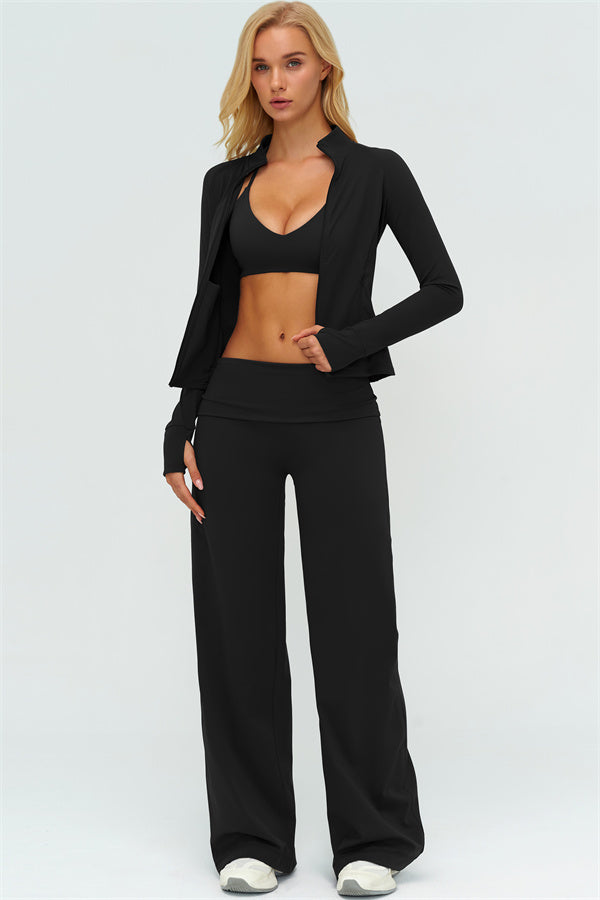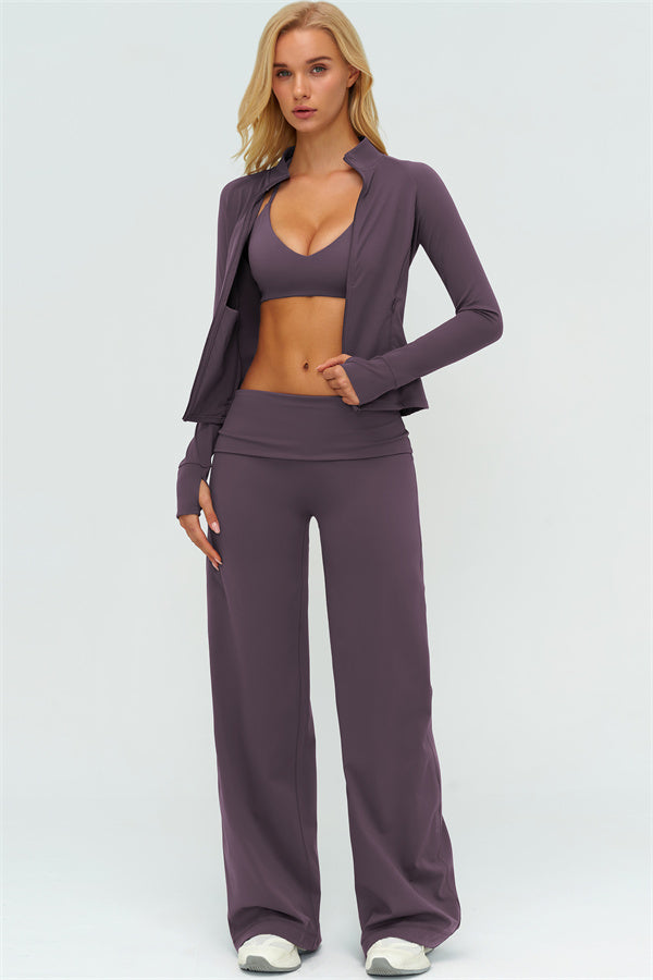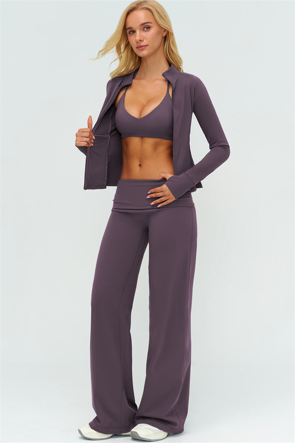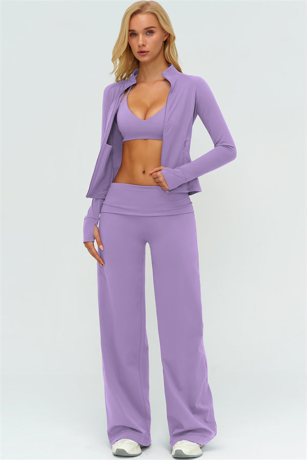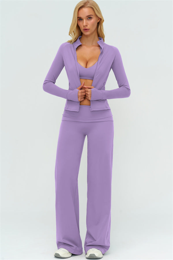 Il Set di Giacca Zip, Reggiseno Sportivo e Pantaloni a Gamba Dritta