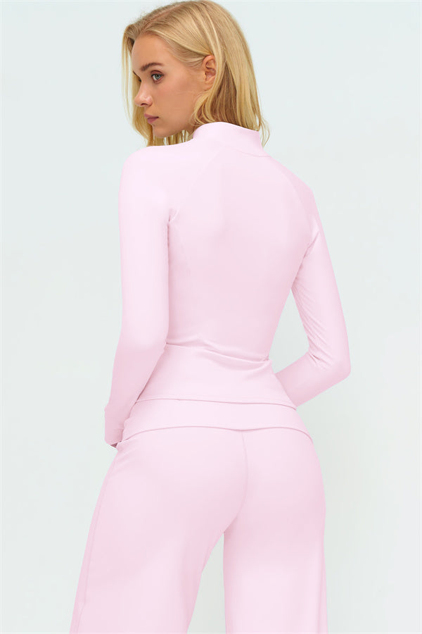 Il Set di Giacca Zip, Top Halter e Pantaloni a Gamba Dritta in 3 Pezzi