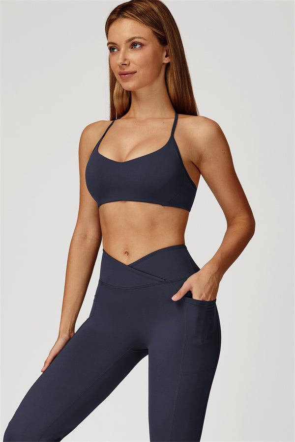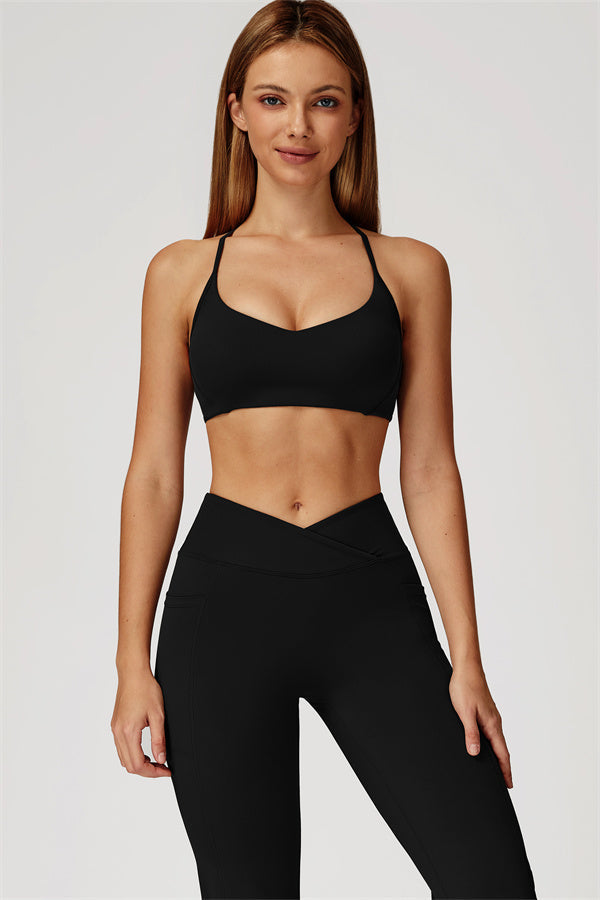 • Design a schiena aperta a forma di Y per una piena mobilità delle spalle e una silhouette a farfalla lusinghiera