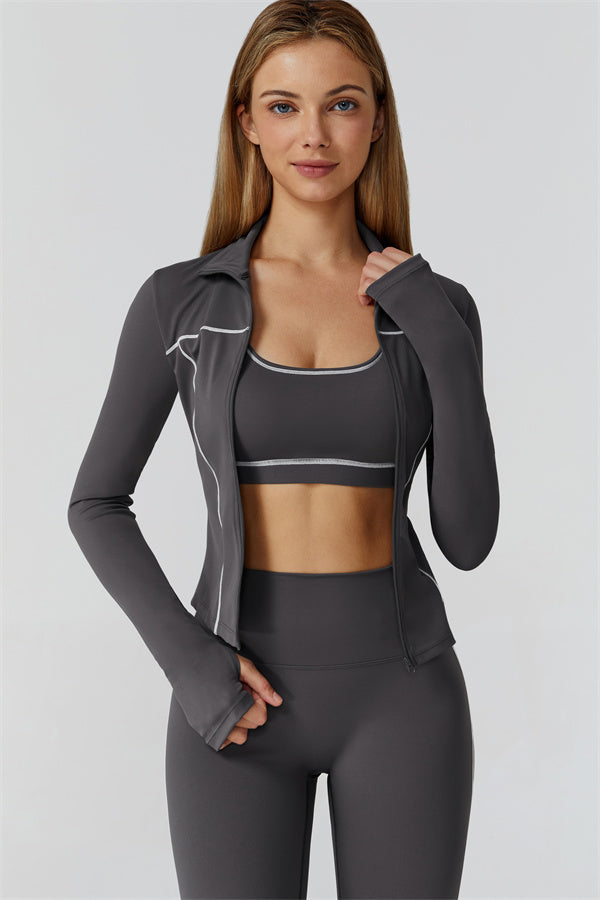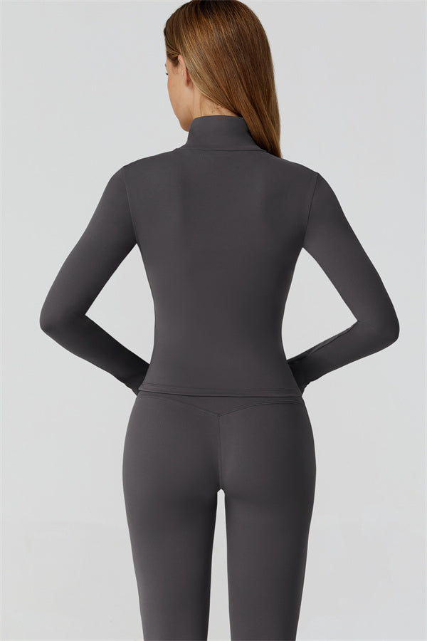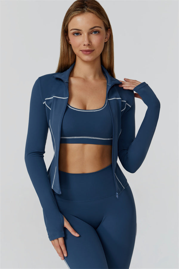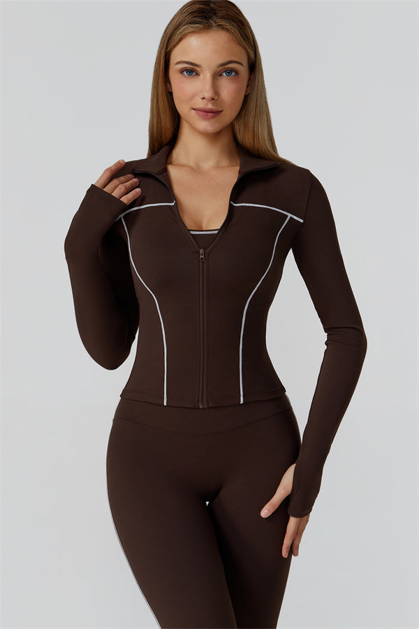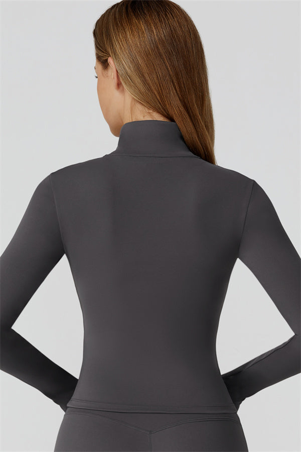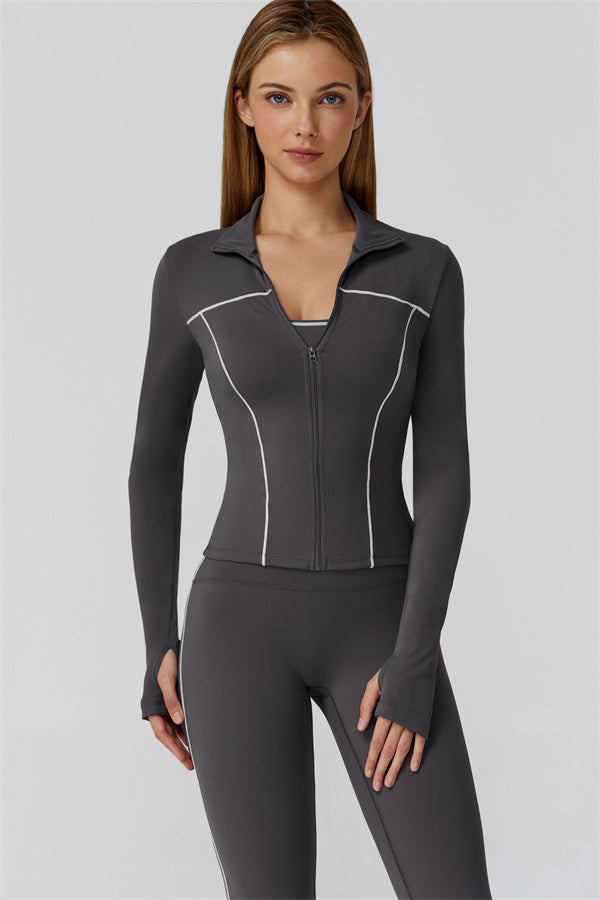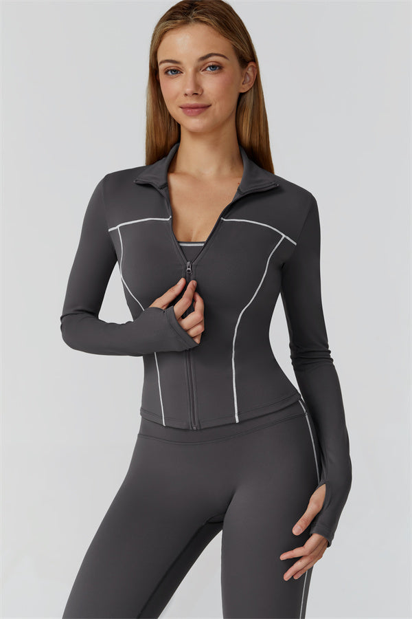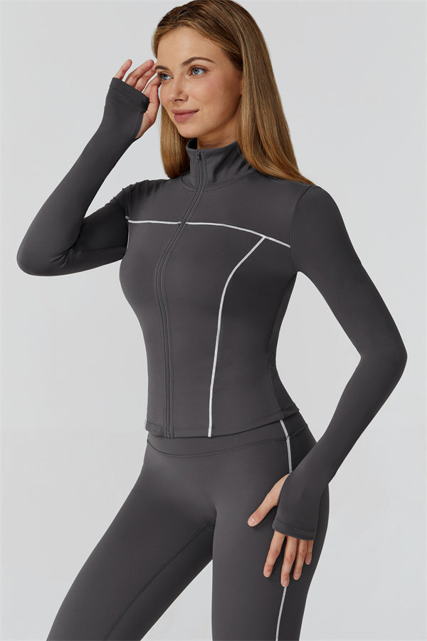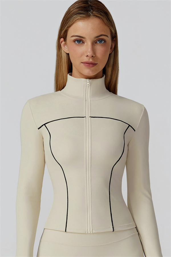 • Zip frontale a lunghezza intera con colletto alto per protezione dal vento