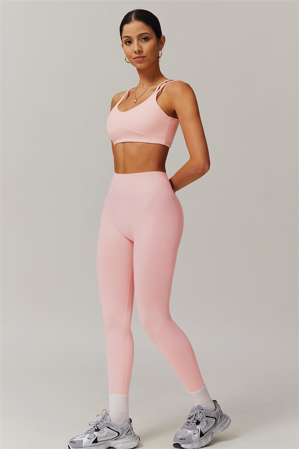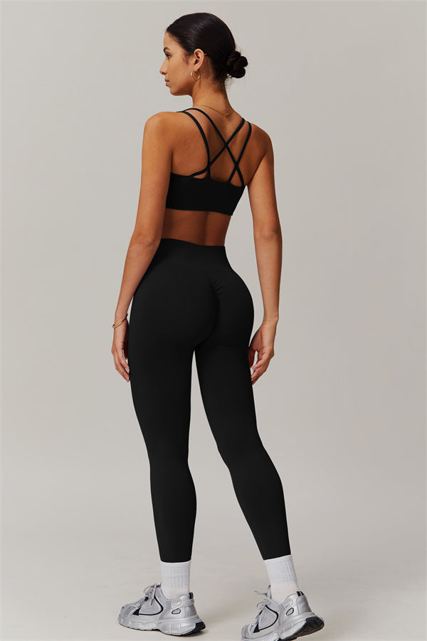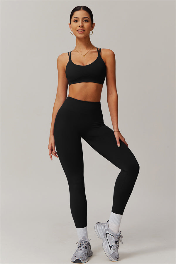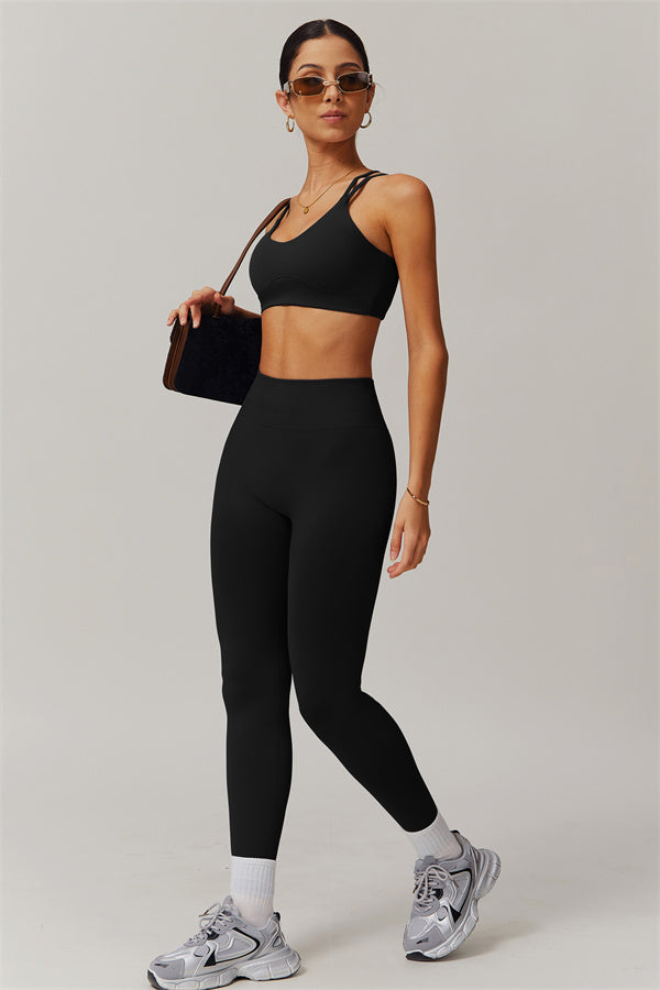 Eleva la tua collezione di abbigliamento sportivo con questo set abbinato chic e funzionale, progettato per esaltare le tue curve naturali mentre offre comfort per tutto il giorno. Il reggiseno sportivo presenta un intricato design a più spalline sul retro che mette in risalto la bellezza della tua schiena, mentre le cuciture scolpenti del pannello frontale valorizzano il tuo décolleté con un aspetto arrotondato e supportato. Il padding removibile consente una vestibilità personalizzata, perfetta sia per gli allenamenti che per l'abbigliamento casual.