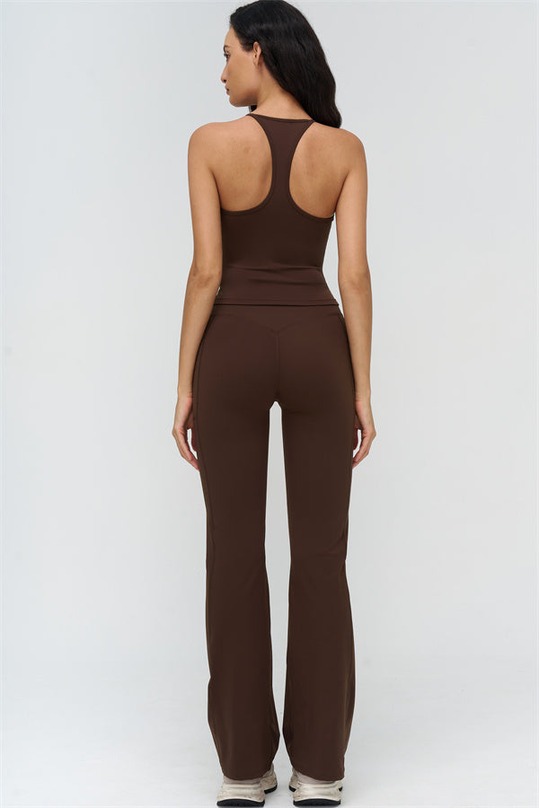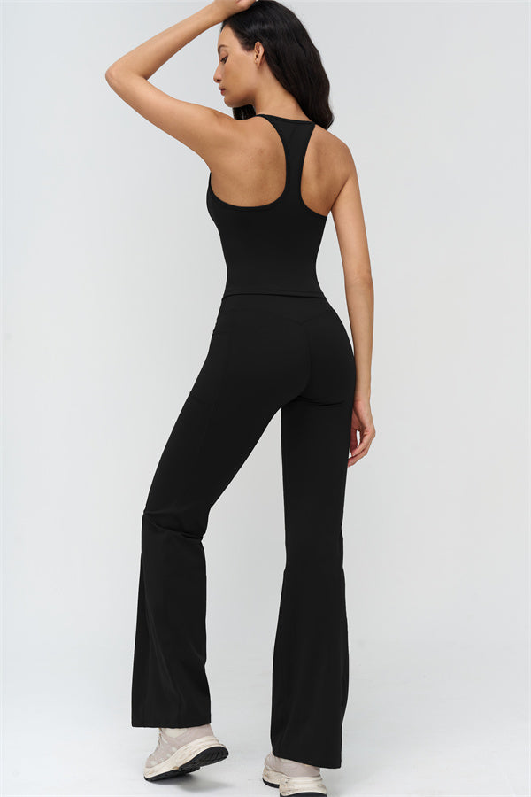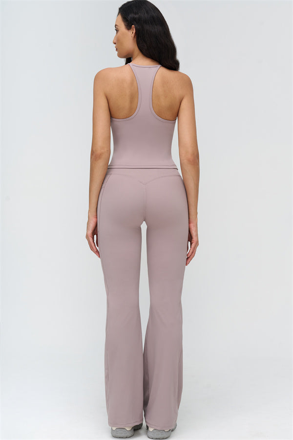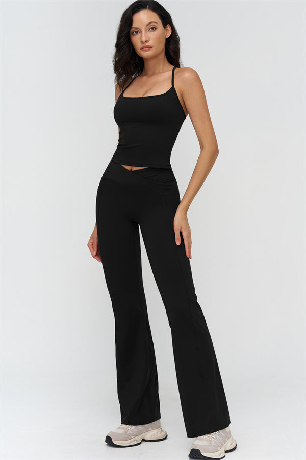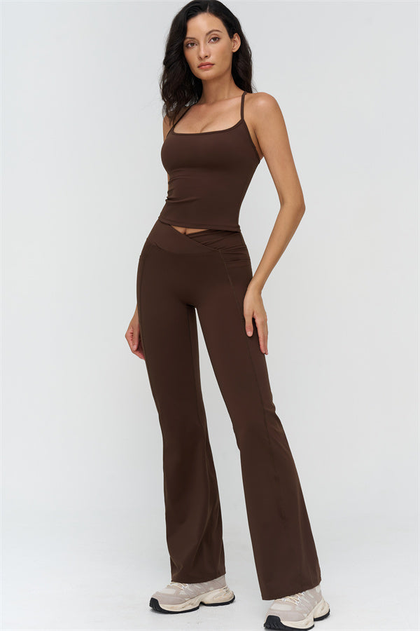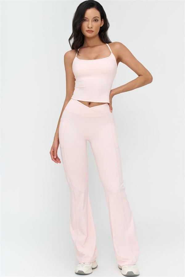 Eleva il tuo abbigliamento sportivo con il Set di Leggings Flared con Top Corto BoldFit, progettato per combinare uno stile lusinghiero con prestazioni funzionali. Il top corto presenta un design con schiena a corsetto che mette in risalto le scapole e le linee a farfalla, mentre l'orlo allungato scolpisce la vita per una vestibilità liscia e sicura. I leggings flared offrono una vita incrociata per prevenire il rotolamento, cuciture scolpenti che sollevano e definiscono i glutei, e polsini svasati per allungare le gambe.