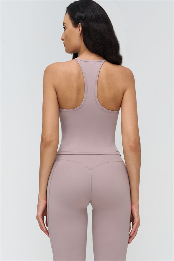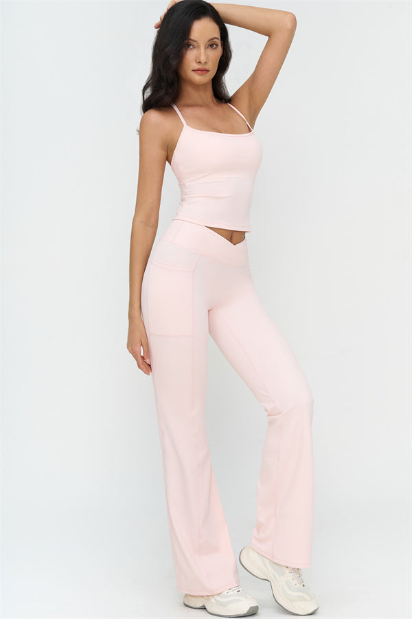 Realizzato in un morbido tessuto a effetto nudo, questo set garantisce comfort traspirante e movimento senza restrizioni, perfetto per allenamenti o abbigliamento casual.