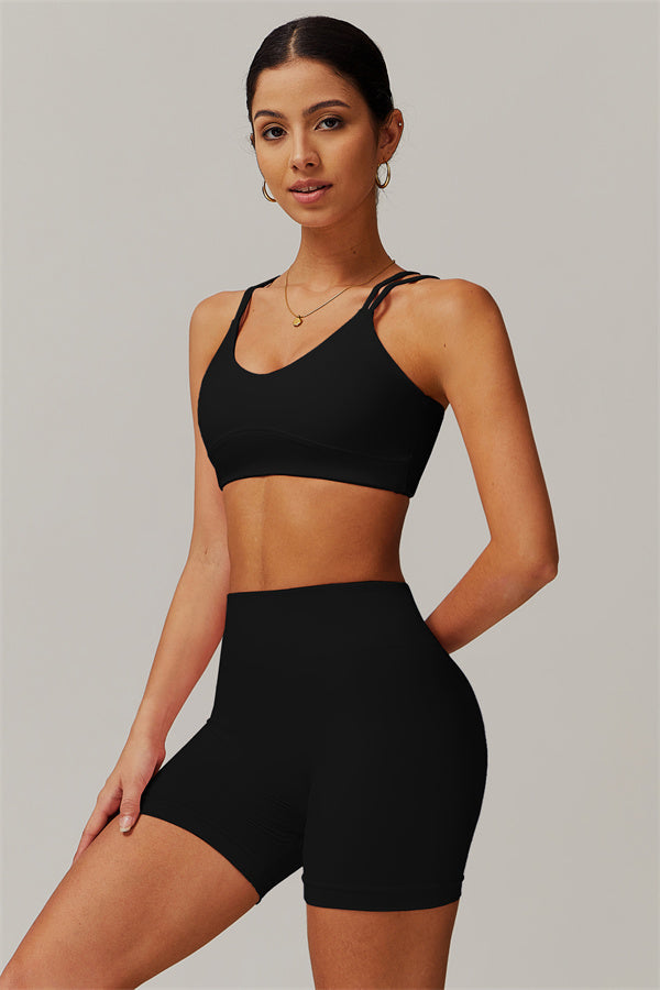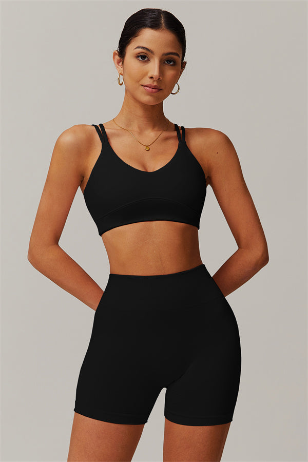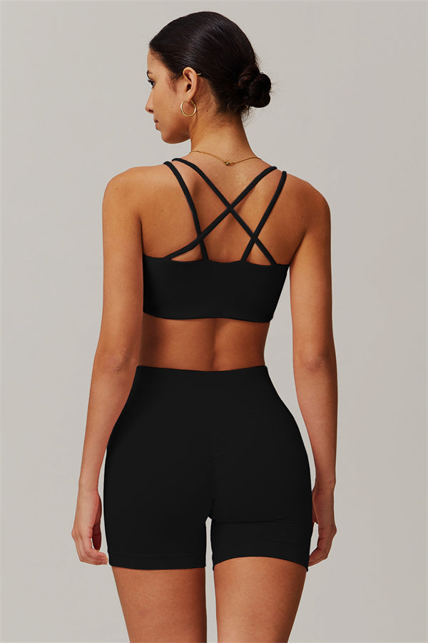 Il reggiseno sportivo vanta un design con spalline multiple incrociate sul retro che esalta la bellezza della tua schiena, creando una silhouette elegante. La parte anteriore è realizzata con cuciture strutturate per sollevare e modellare il tuo décolleté, per un aspetto lusinghiero e pieno. Le coppe removibili ti consentono di personalizzare la vestibilità, rendendolo perfetto per allenamenti o uscite informali.