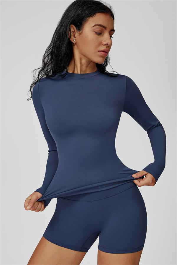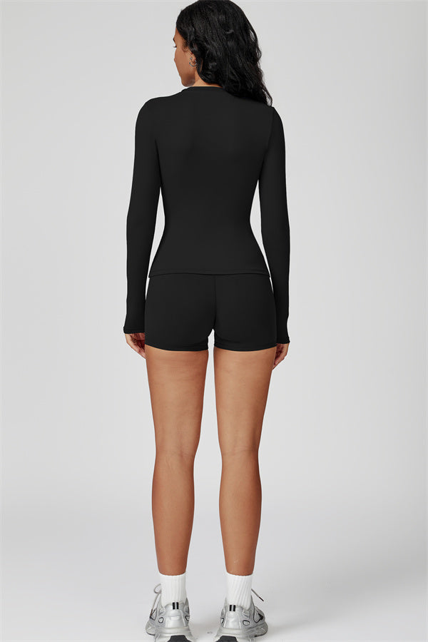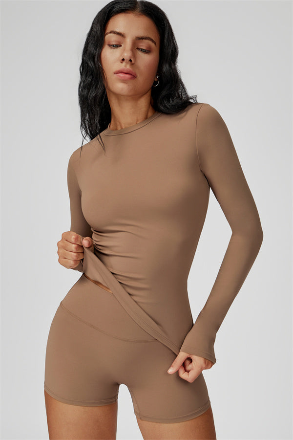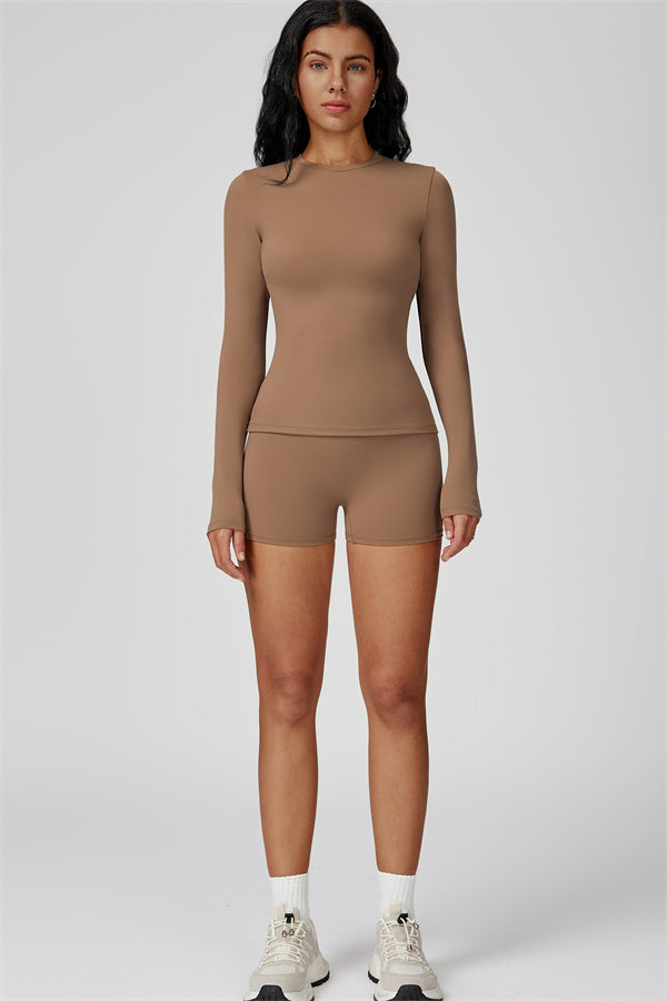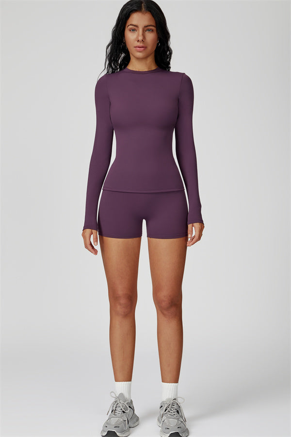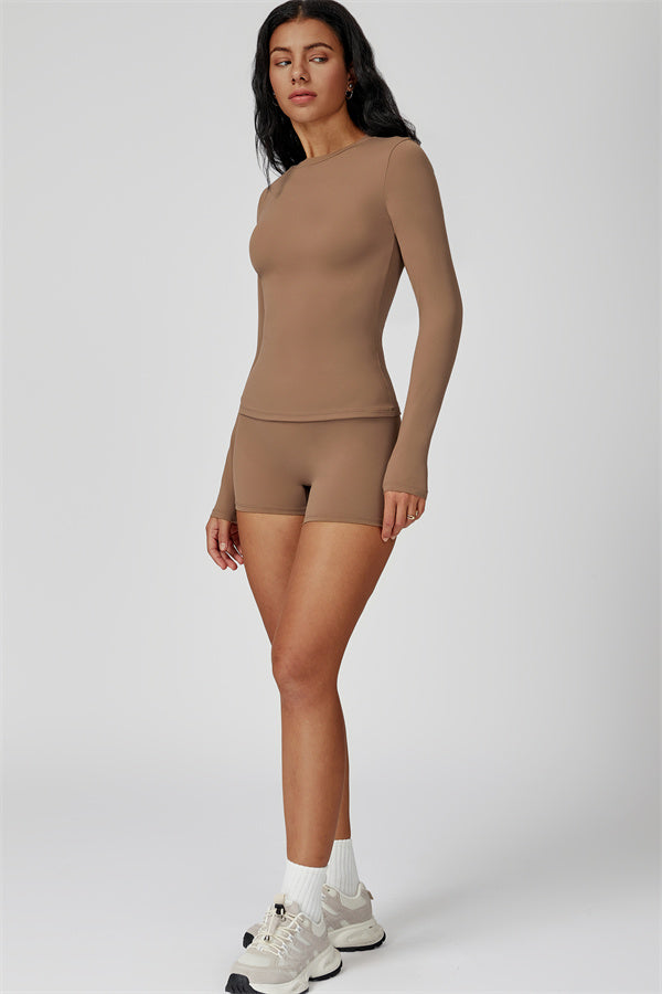 Dove il contorno incontra il comfort. Il Set Oasis abbina una T-shirt a manica lunga modellante ai nostri pantaloni corti che esaltano le curve, progettati per modellare, sostenere e muoversi con te. Ideale per giornate più fresche o per sovrapposizioni post-allenamento.
