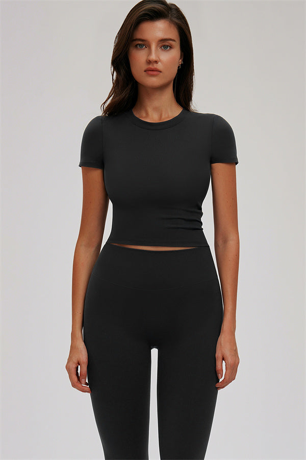 • Design slim-fit a maniche corte per una silhouette elegante