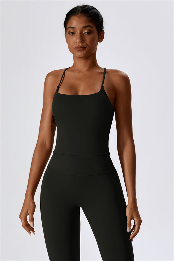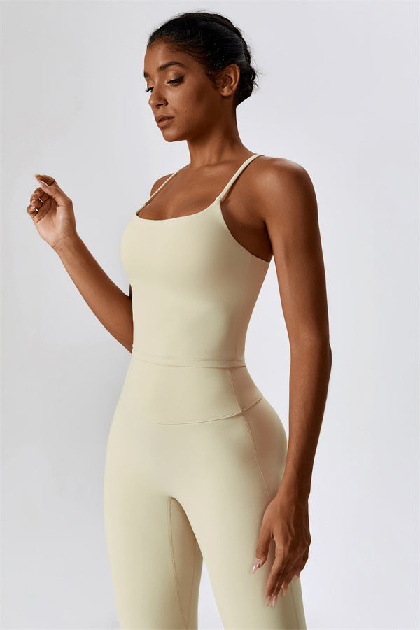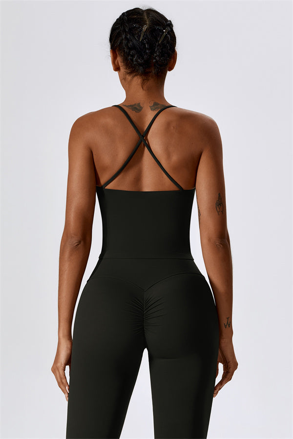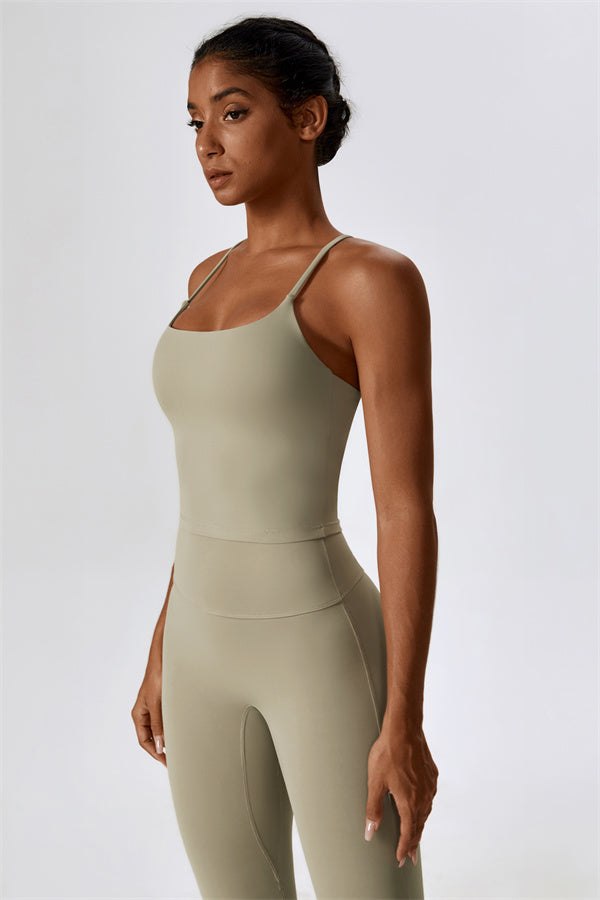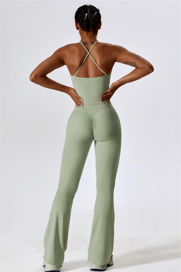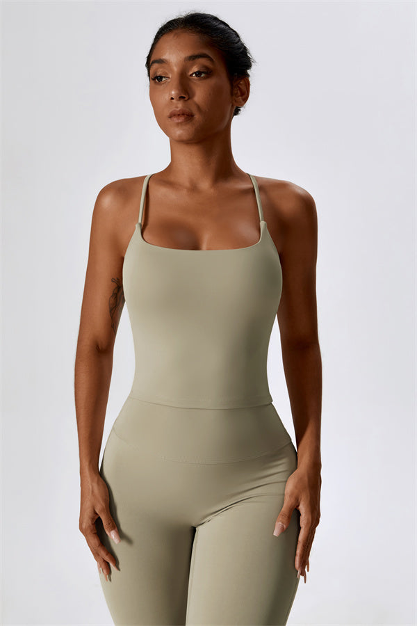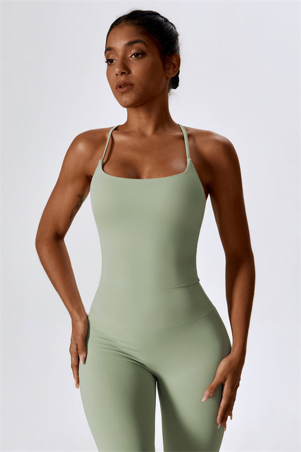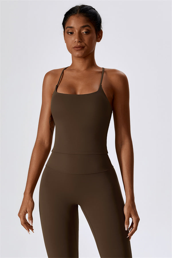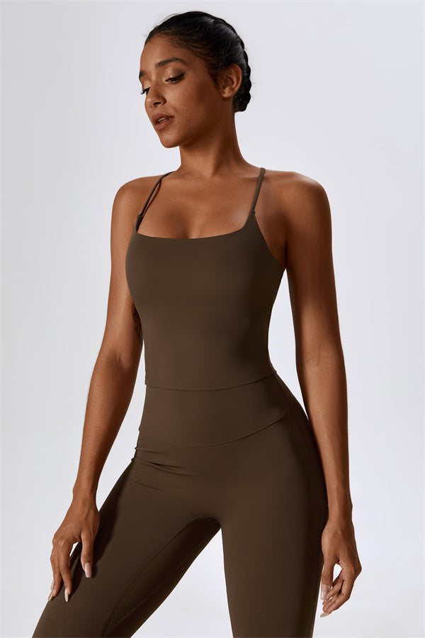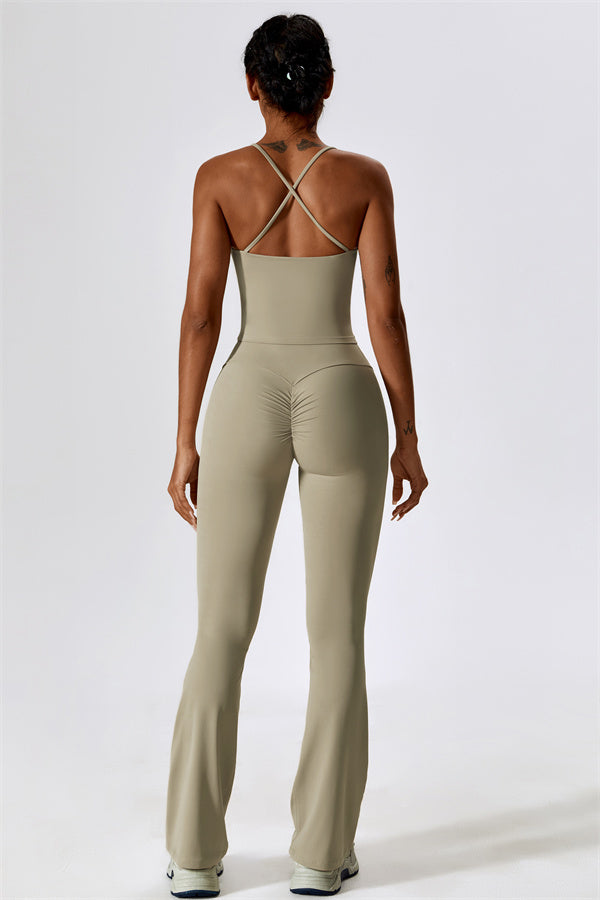 Questo set coordinato, che include un top corto e leggings, combina comfort, stile e prestazioni per l'ensemble perfetto per l'allenamento. Il top corto presenta un orlo allungato per un effetto di controllo della pancia confortevole e delicato, e le spalline incrociate mettono in risalto magnificamente la tua schiena. I leggings sono progettati con una silhouette a campana che valorizza la forma delle tue gambe, mentre il design scolpito sul retro enfatizza le tue curve naturali, creando una silhouette liscia e morbida.
