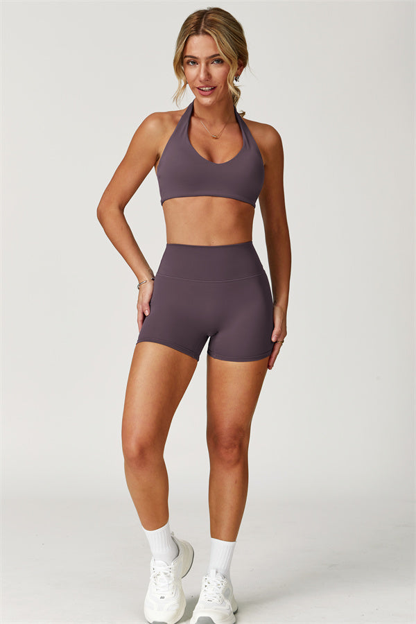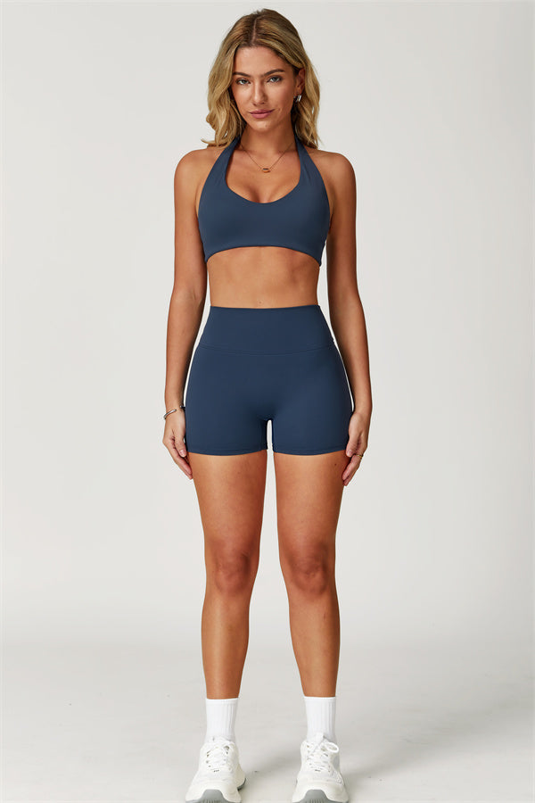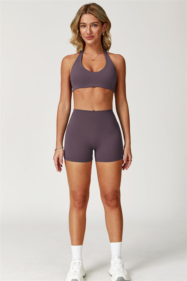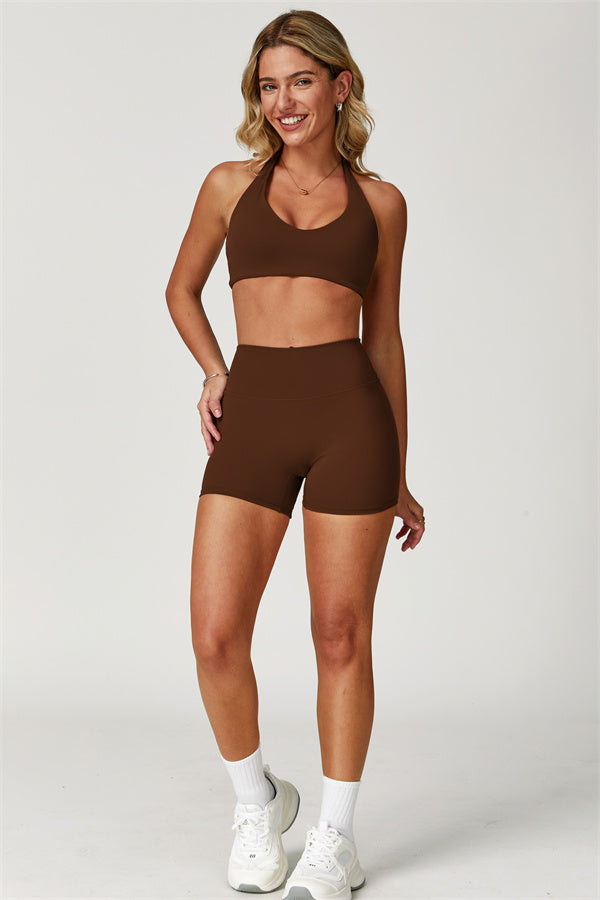 Migliora il tuo abbigliamento sportivo con Il Set di Top Sportivo Halter Boost e Shorts Isabella a 2 Pezzi, un set elegante e di supporto progettato sia per le prestazioni che per la moda.