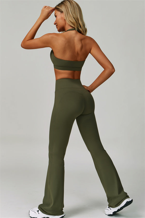 Il Set di Top Sportivo Halter e Leggings Svasati in 2 Pezzi