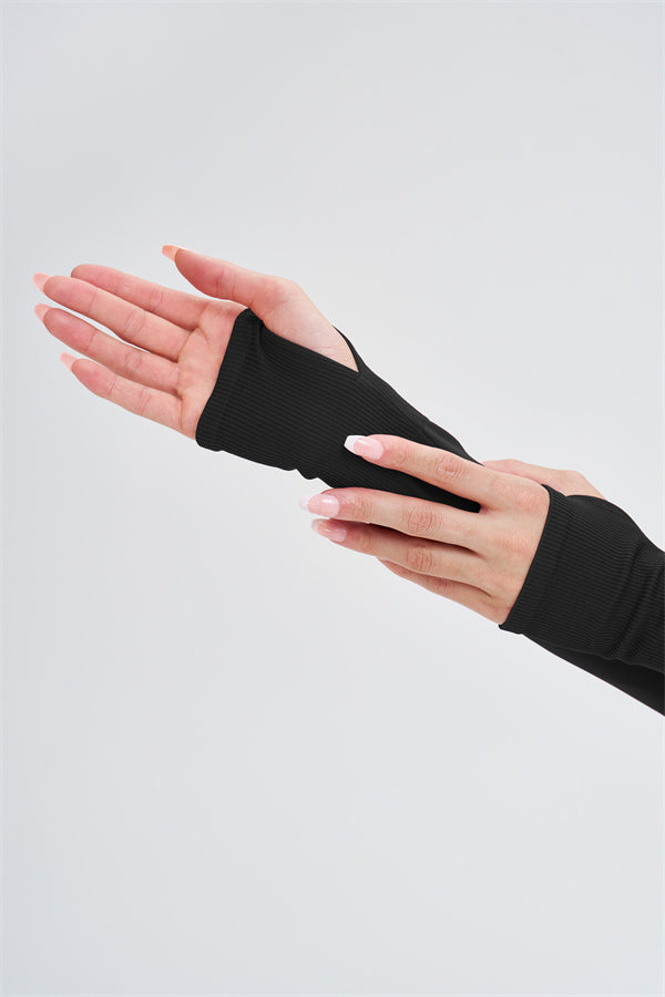 • Maniche: Polsini con foro per il pollice e maniche lunghe per una vestibilità sicura e antiscivolo durante il movimento