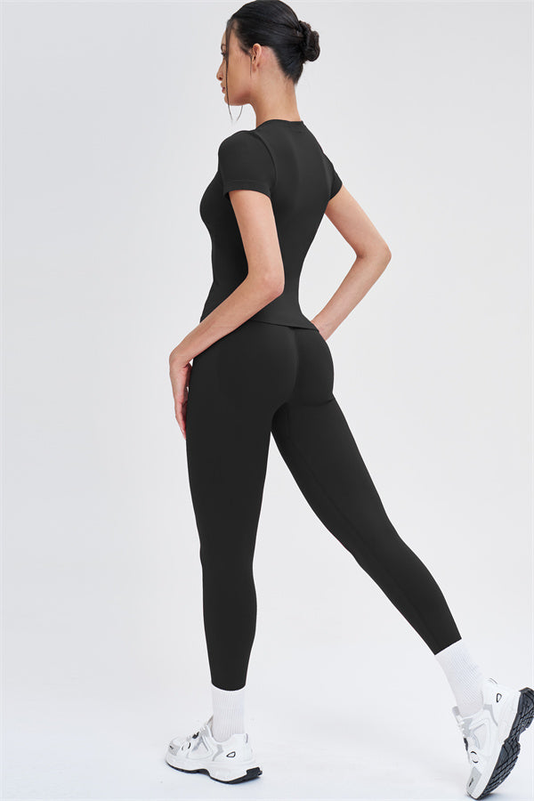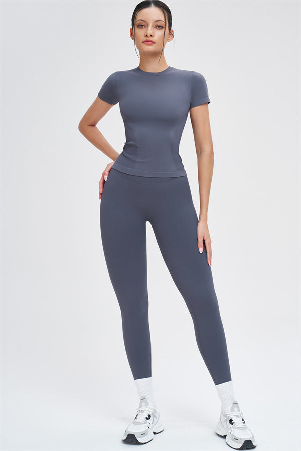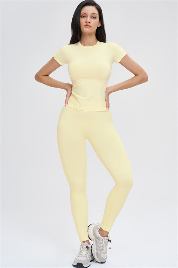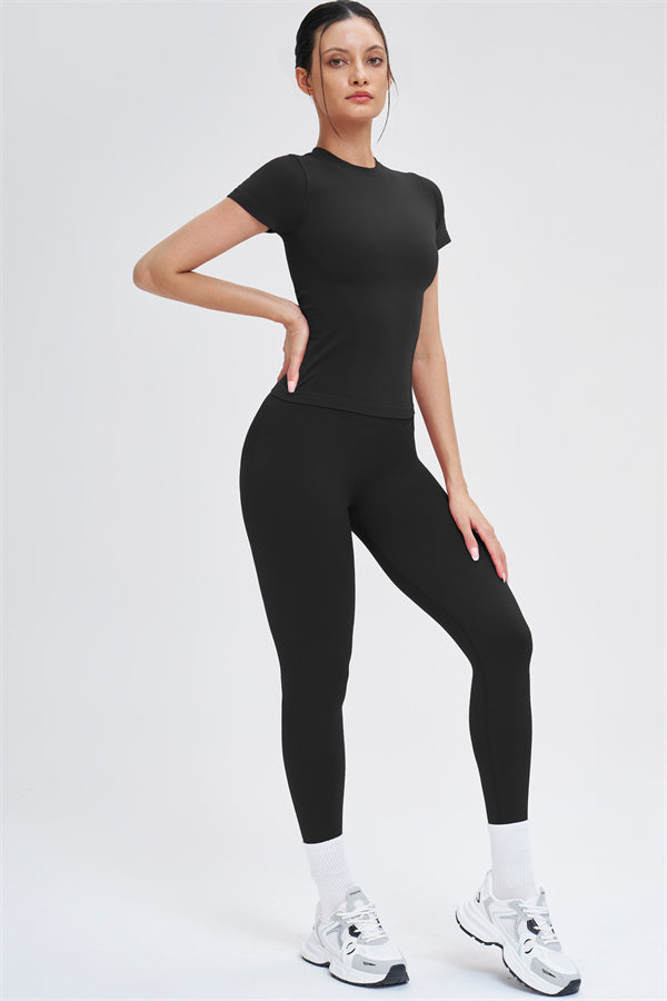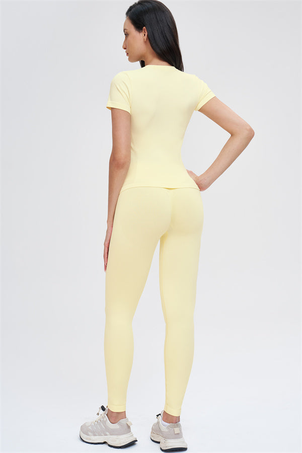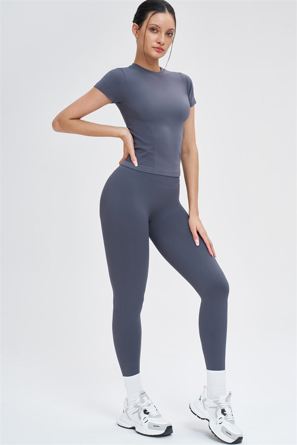 Il Set di 2 Pezzi Leggings e T-shirt Whim è progettato per scolpire, supportare e muoversi con te, combinando una silhouette elegante con comfort senza cuciture per l'allenamento e l'uso quotidiano.