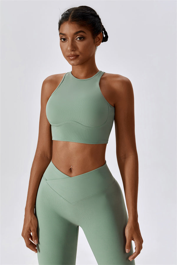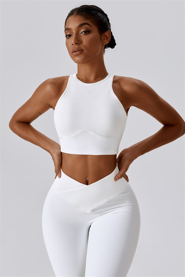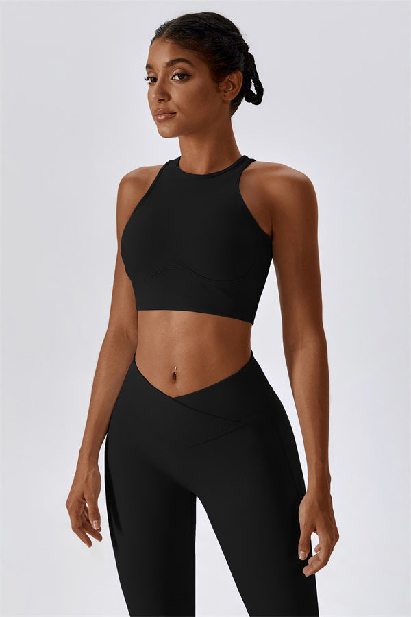 Questo set coordinato, composto da un reggiseno sportivo e leggings, combina stile e prestazioni per il tuo stile di vita attivo. Il reggiseno sportivo è progettato con uno stile senza maniche e scollatura rotonda che offre una vestibilità comoda, mentre i leggings sono progettati con un effetto modellante che esalta le tue curve e migliora la tua forma naturale. L'alta vita e il design unico garantiscono una silhouette liscia e a forma di pesca per un look sicuro durante il tuo allenamento.