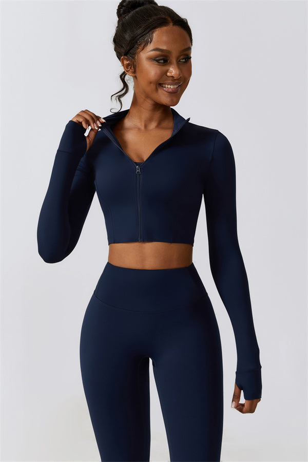 Realizzato con il nostro esclusivo mix di 78% nylon riciclato e 22% spandex, il tessuto è amico della pelle e ultra-morbido, con eccellenti proprietà di assorbimento dell'umidità per mantenerti asciutta e comoda durante attività intense. La giacca completa il set con una vestibilità elegante, aggiungendo un ulteriore strato di versatilità per il riscaldamento o gli allenamenti all'aperto. Questo set offre uno stile snello e orientato alle prestazioni che ti farà apparire e sentirti al meglio, sia in palestra che fuori.