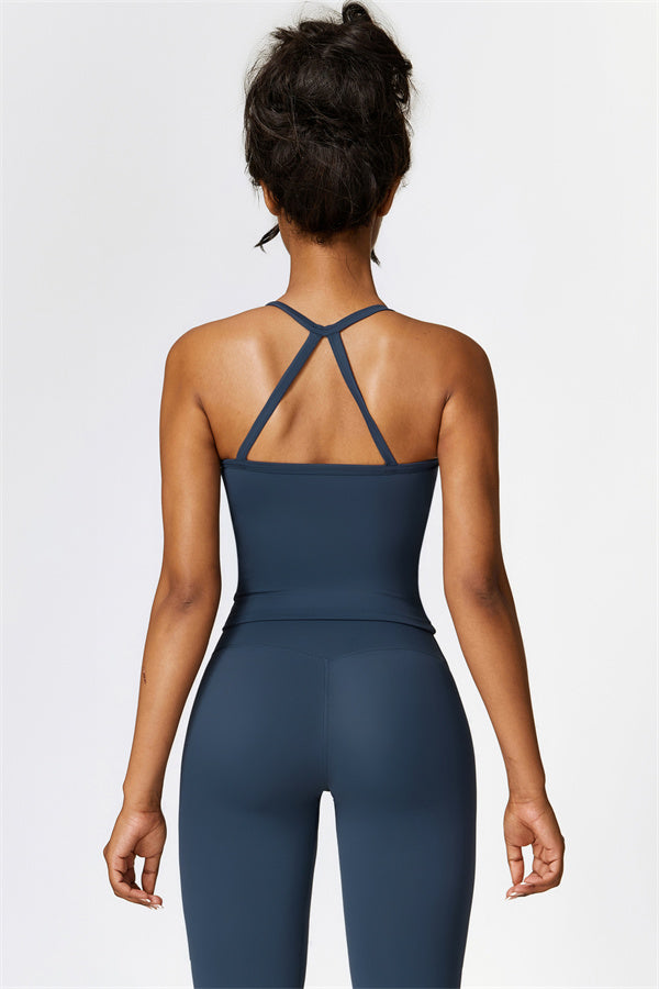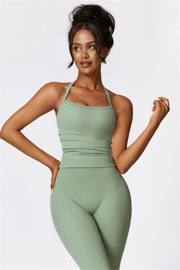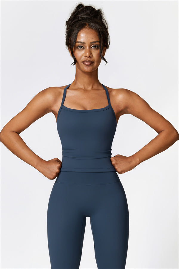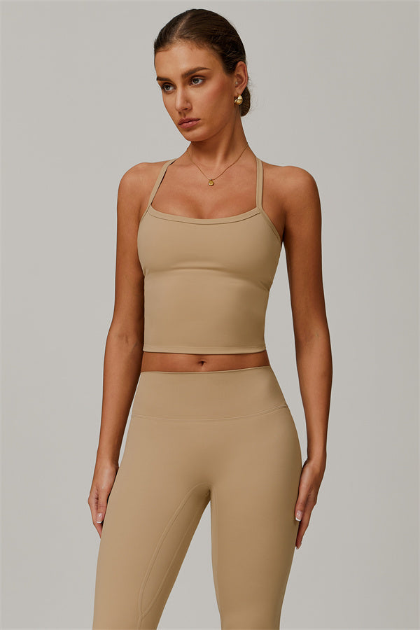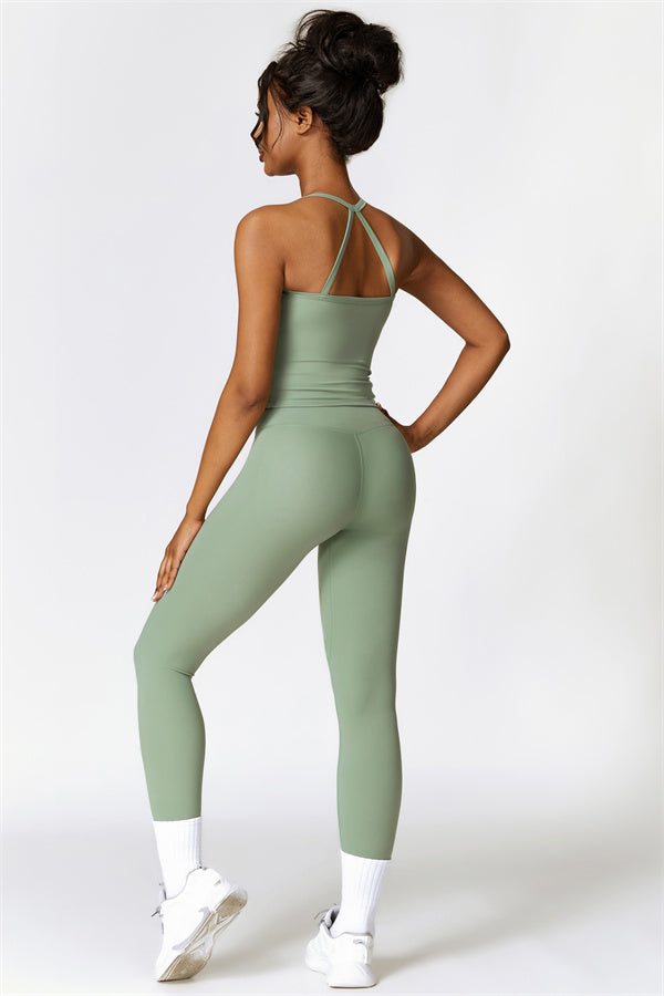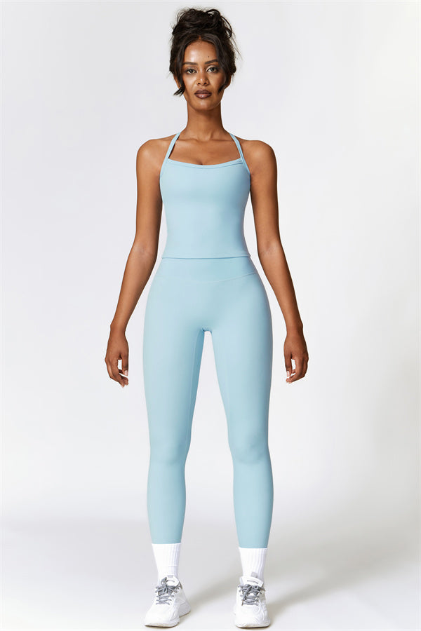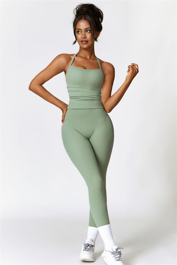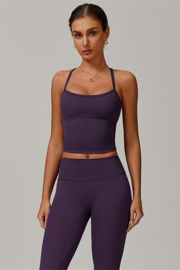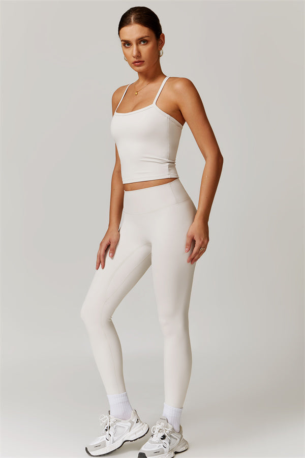 Questo set coordinato, composto da un crop top e leggings, è progettato per migliorare sia lo stile che le prestazioni. Il crop top vanta un delicato design incrociato sulla schiena con spalline sottili, scolpendo e mettendo in risalto le curve naturali della schiena. Il suo tessuto traspirante e che assorbe l'umidità ti mantiene fresca e asciutta, mentre il design a contorno lusinghiero dei leggings crea senza sforzo un retro scolpito e tonico.