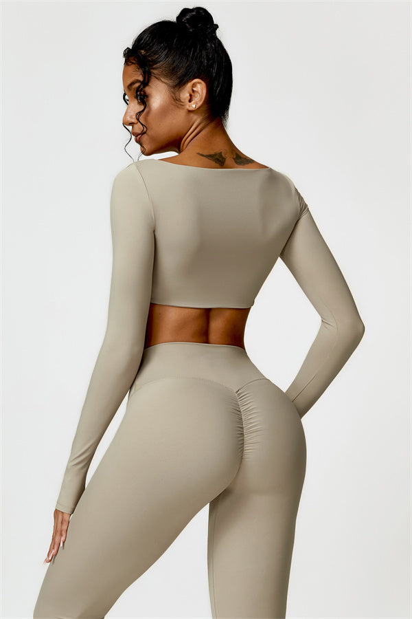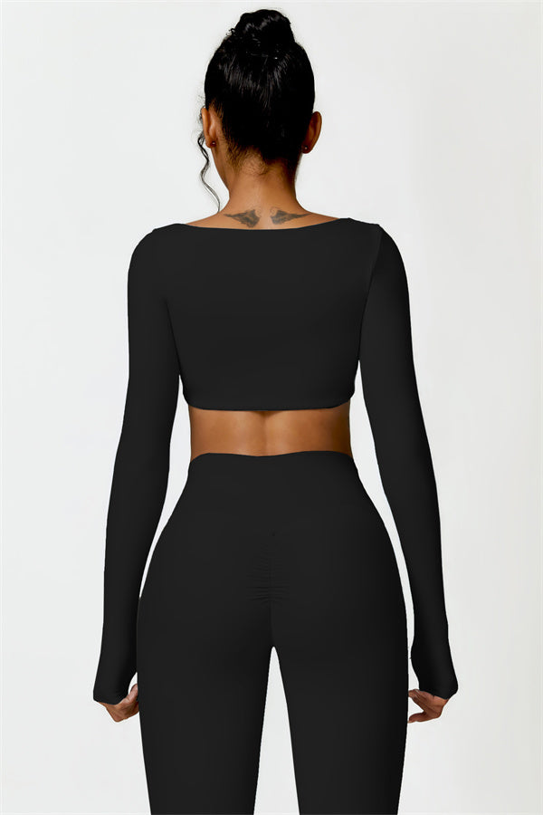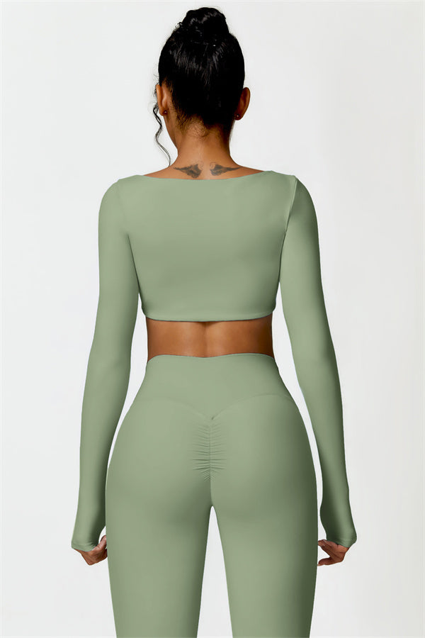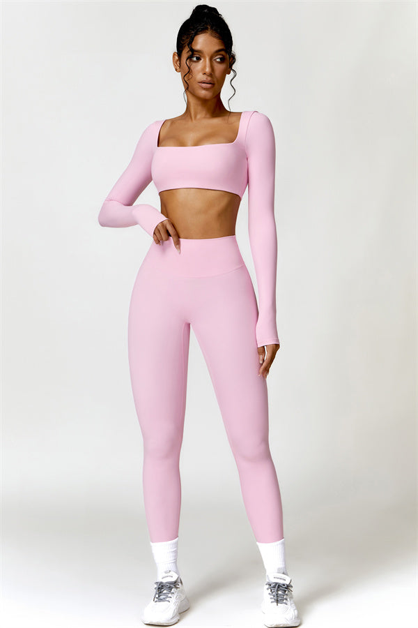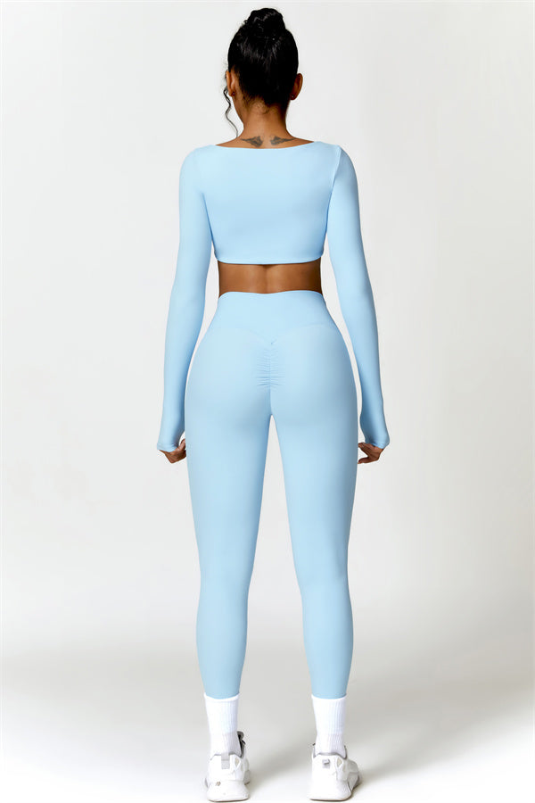 Questo set abbinato presenta un top corto a maniche lunghe progettato per esaltare la tua vita mentre offre una vestibilità elegante e lusinghiera. La costruzione senza cuciture del top garantisce movimenti fluidi e senza restrizioni per qualsiasi attività, permettendoti di rimanere comoda e alla moda durante il tuo allenamento.