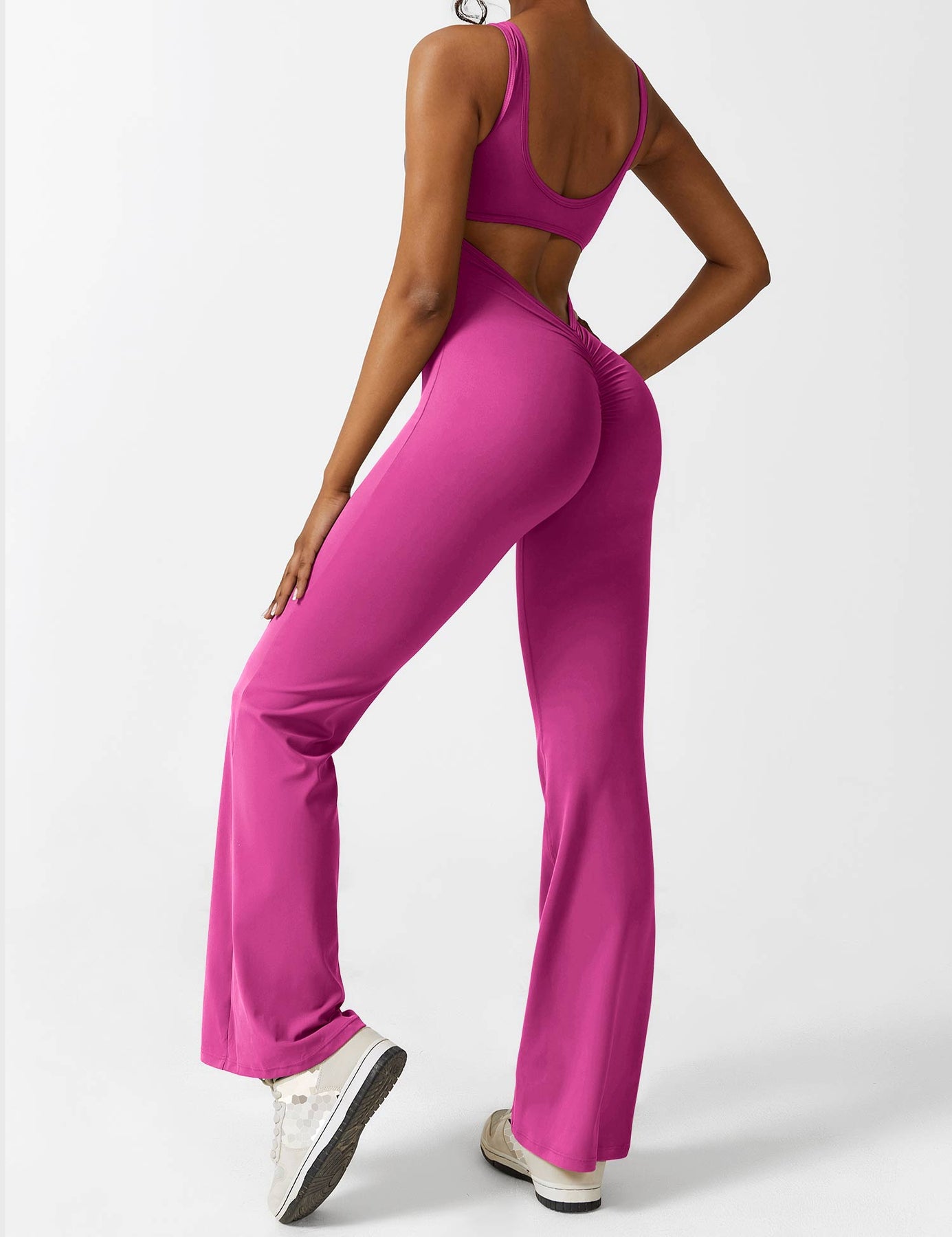 Eleva il tuo stile con la chic Tuta Lizvette! Questo pezzo straordinario presenta una audace schiena a V profonda e pieghe lusinghiere che esaltano le tue curve per una silhouette perfetta simile a quella di una pesca. Il suo design svasato allunga le tue gambe, rendendola ideale per yoga, allenamenti o per un look quotidiano senza sforzo.