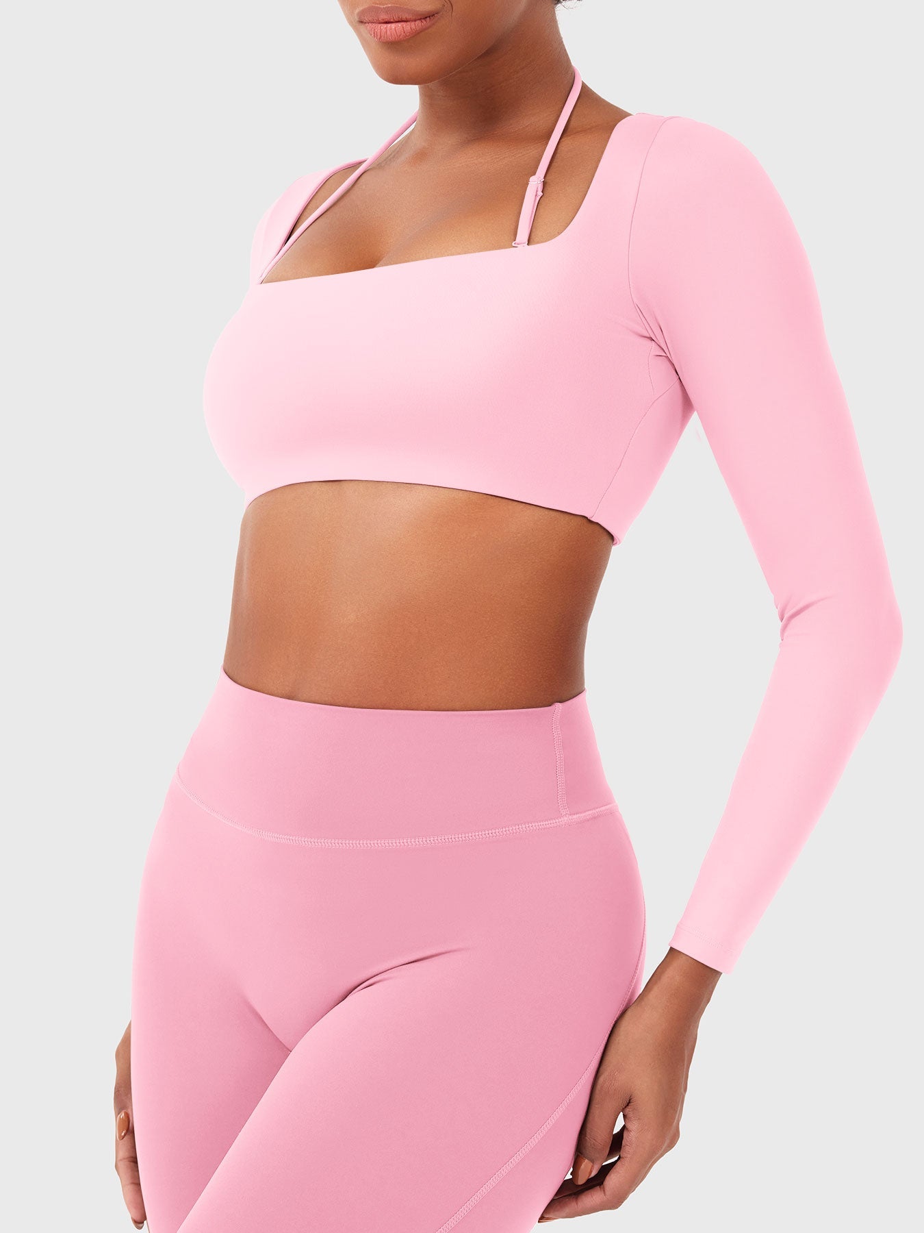 Il top corto a maniche lunghe Violie unisce moda e funzionalità in una silhouette slim. Caratterizzato da un collo quadrato basso e spalline regolabili e removibili, offre un look personalizzabile. Realizzato in un morbido tessuto felpato con supporto integrato, questo pezzo passa senza sforzo dallo studio alla strada. Con le spalline attaccate o staccate—decidi tu.