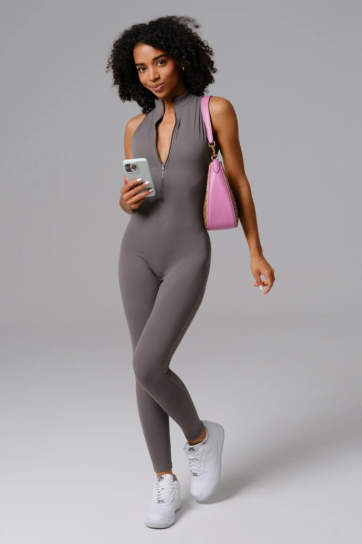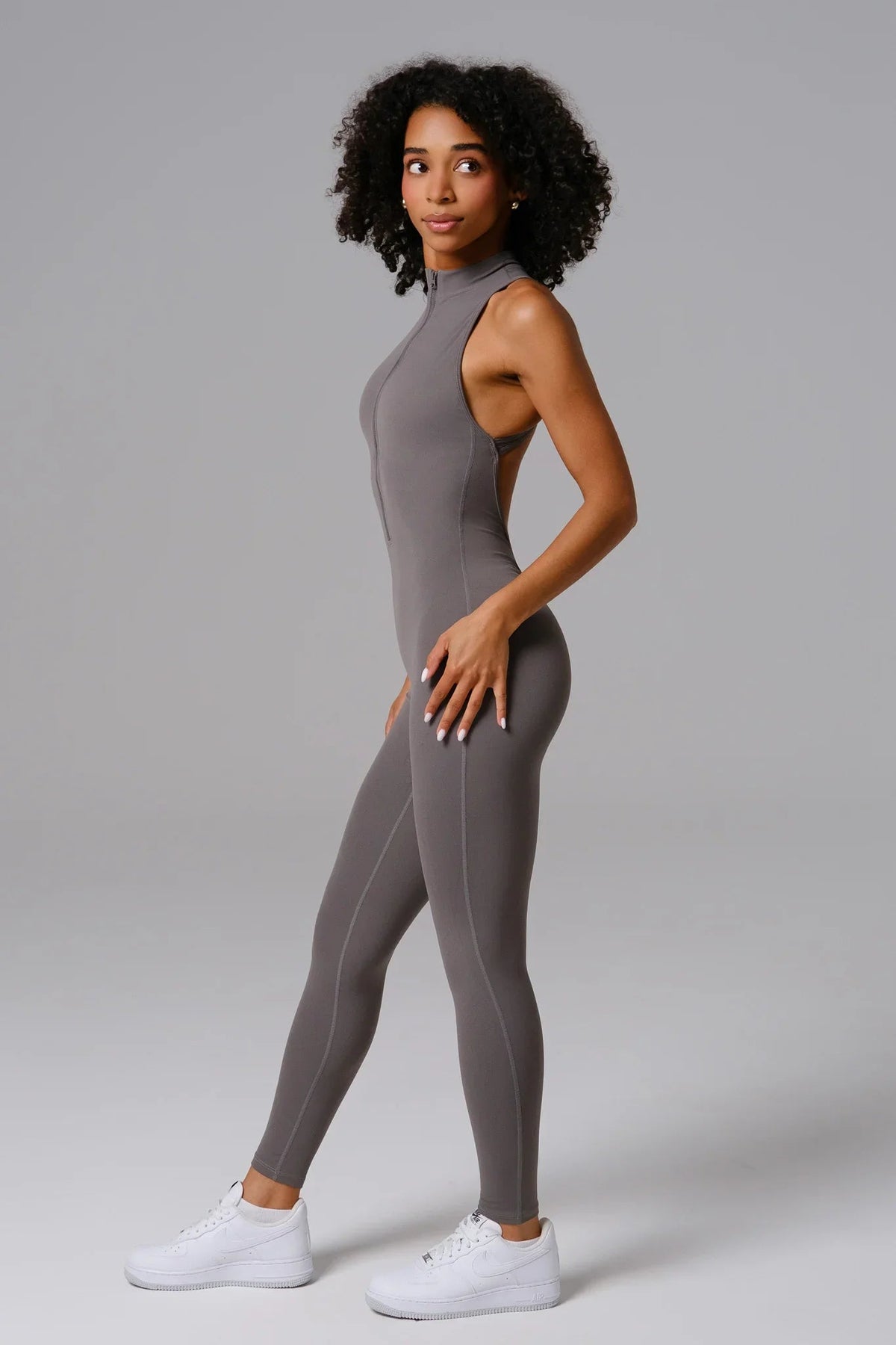 Un elegante jumpsuit a lunghezza intera con scollatura zip-front e schiena aperta con dettagli arricciati per una silhouette lusinghiera. Realizzato in tessuto morbido ed elastico, l'Anita Jumpsuit include un reggiseno incorporato con imbottitura rimovibile per un supporto personalizzabile. Progettato per il movimento e lo stile, si adatta perfettamente da sessioni in studio a look streetwear.